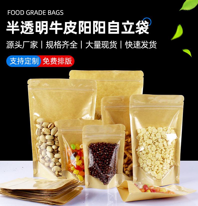 Bolsa de Papel Kraft Transparente Bolsa Ziplock Yin y Yang Bolsa de Plástico Autoportante para Empaque de Alimentos Bolsa Lista para Usar Impresa para Té de Nuez