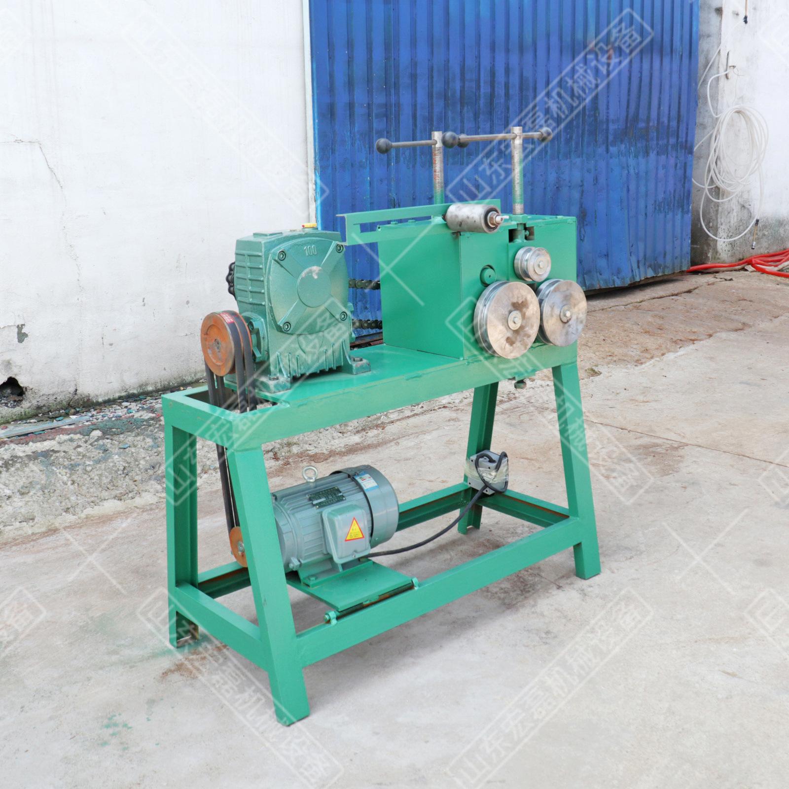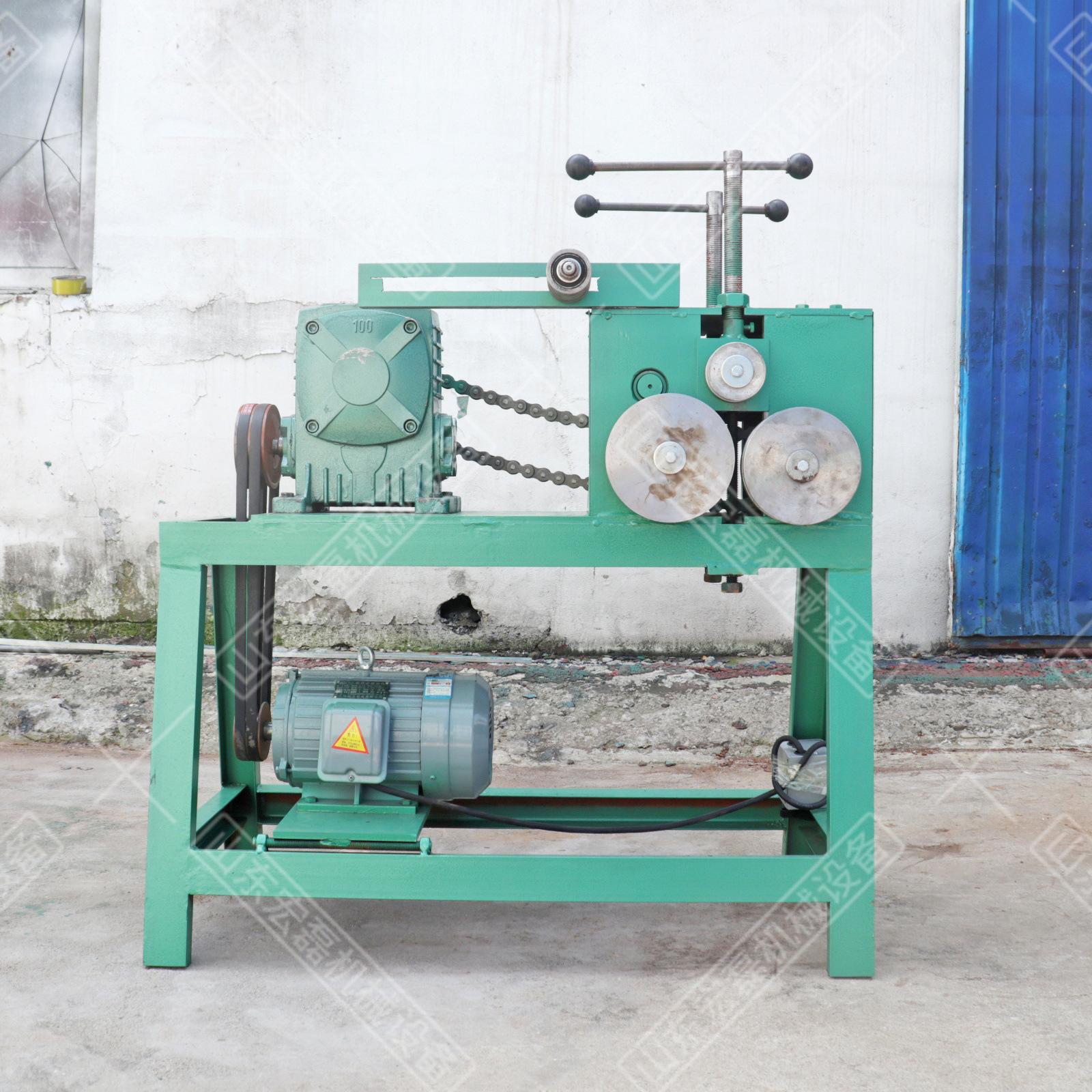 Este equipo incorpora una caja reductora de turbina con transmisión por cadena, que gira hacia adelante y hacia atrás para formar la curva. El radio de curvatura se puede ajustar a voluntad, lo que resulta ideal para curvar o rizar radios grandes.