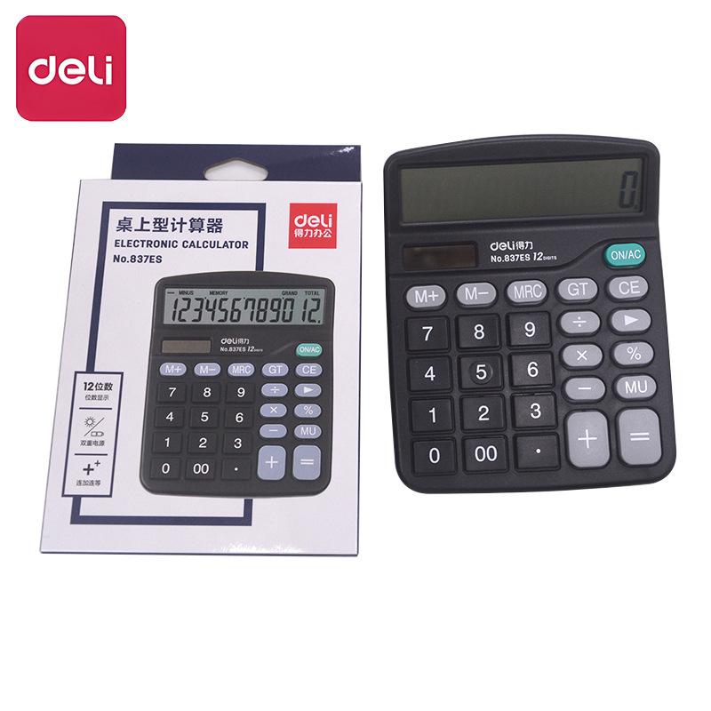 Calculadora de escritorio Deli 837 de doble potencia, suministros financieros para oficina, 12 unidades digitales.