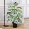 Mini planta artificial en maceta transfronteriza con combinación de simulación de planta verde con tacto de hoja de palma roja y mango de piedra con patrón de bonsái artificial de plástico |