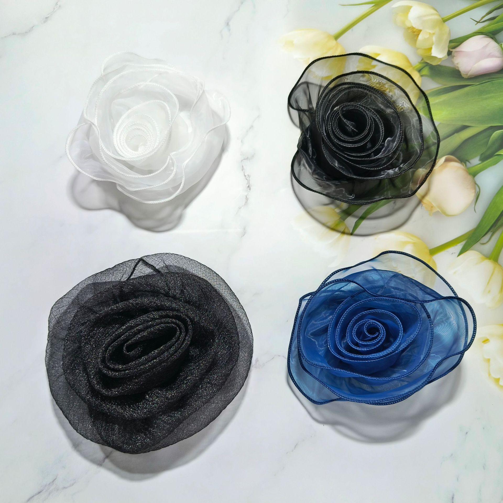 Blue Organza Big Flower, White Organza Big Flower, Black Organza Big Flower, black gauze big flower