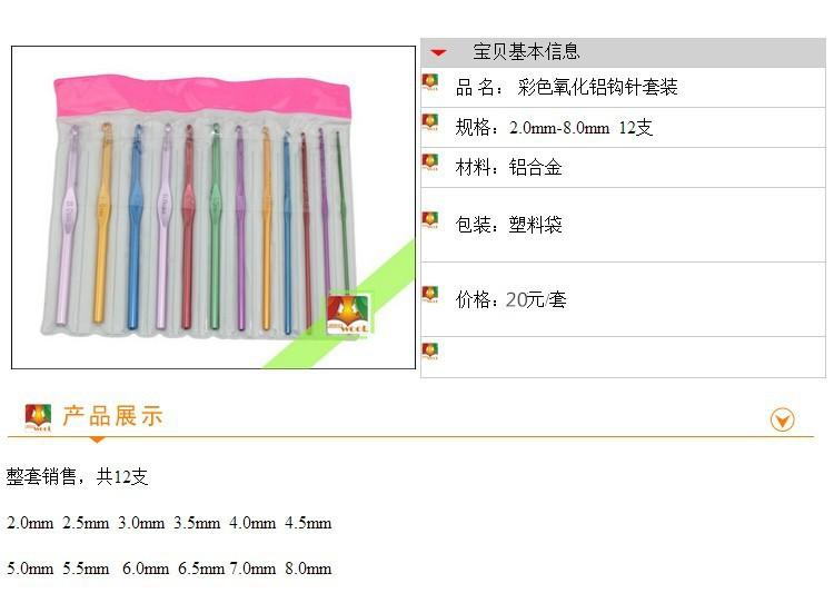 Herramientas de tejido de lana color alúmina ganchillo traje encaje ganchillo 2.0-8.0mm juego completo 12 piezas envío gratis