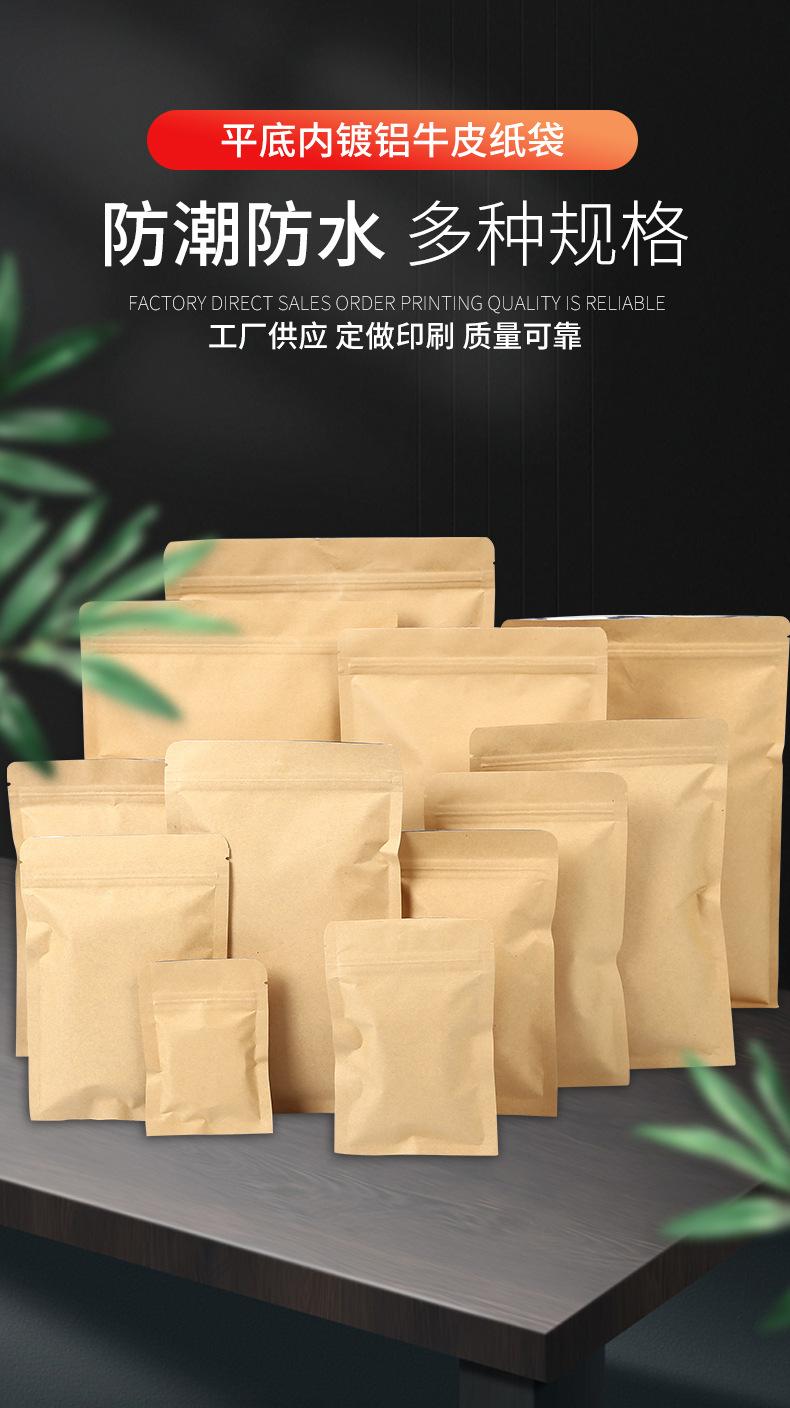 Bolsa Ziplock de Papel de Embalaje Marrón Bolsa Aluminizada Sellada Bolsa para Empaque de Alimentos Té Snack Nuez Bolsa de Papel Kraft Personalizada Venta al Mayoreo