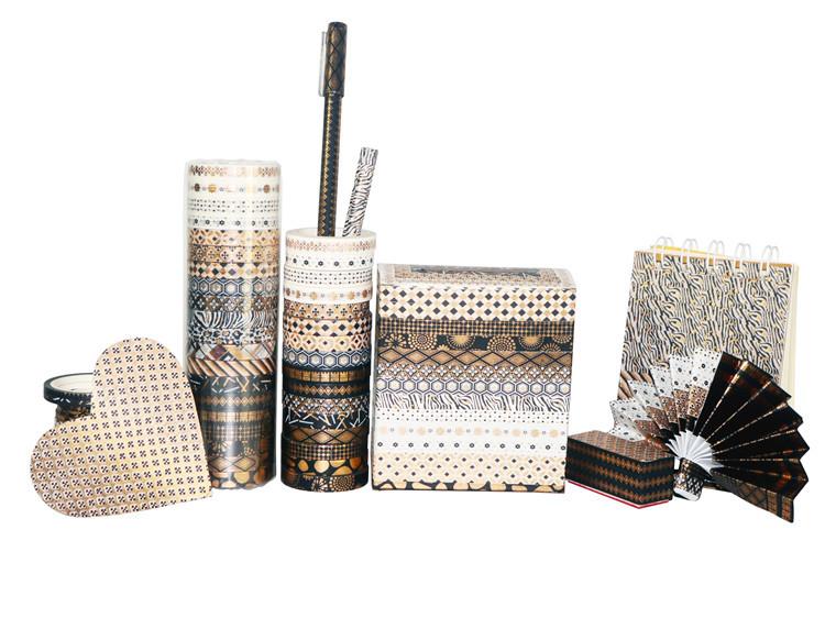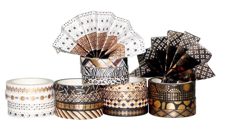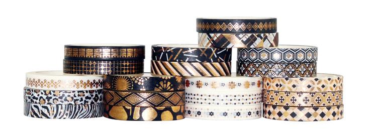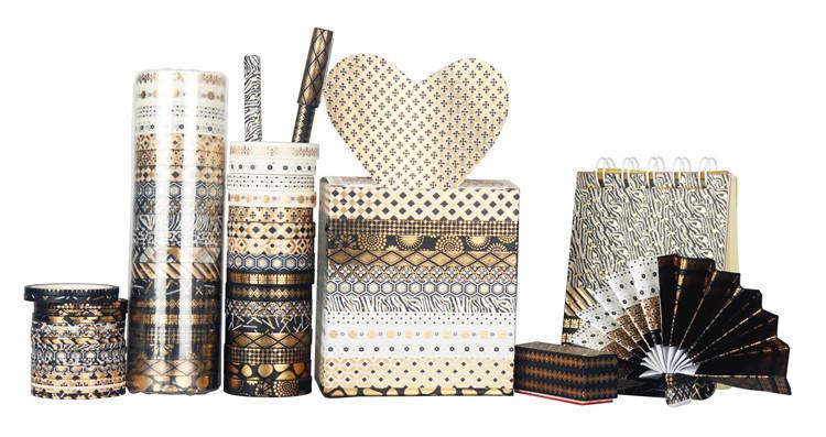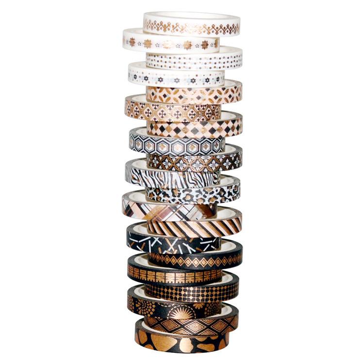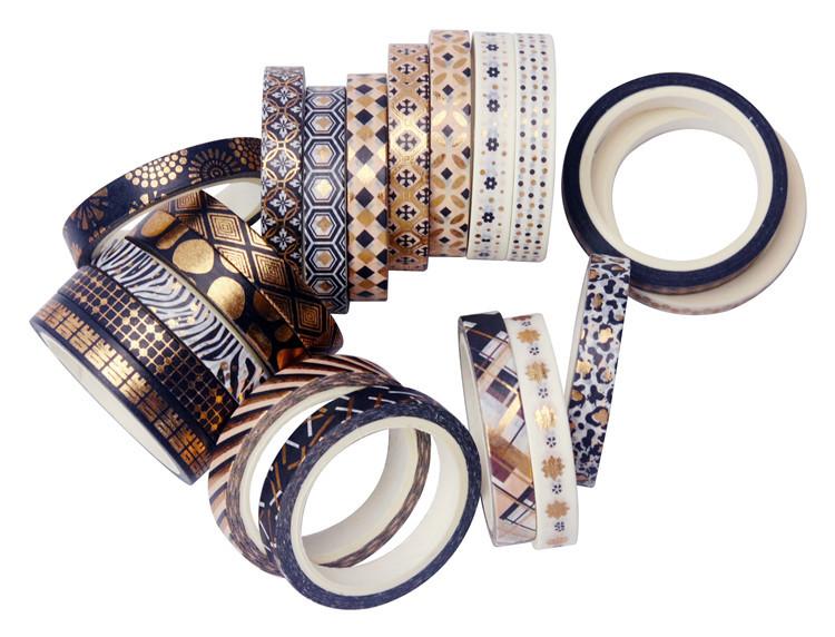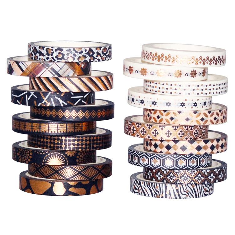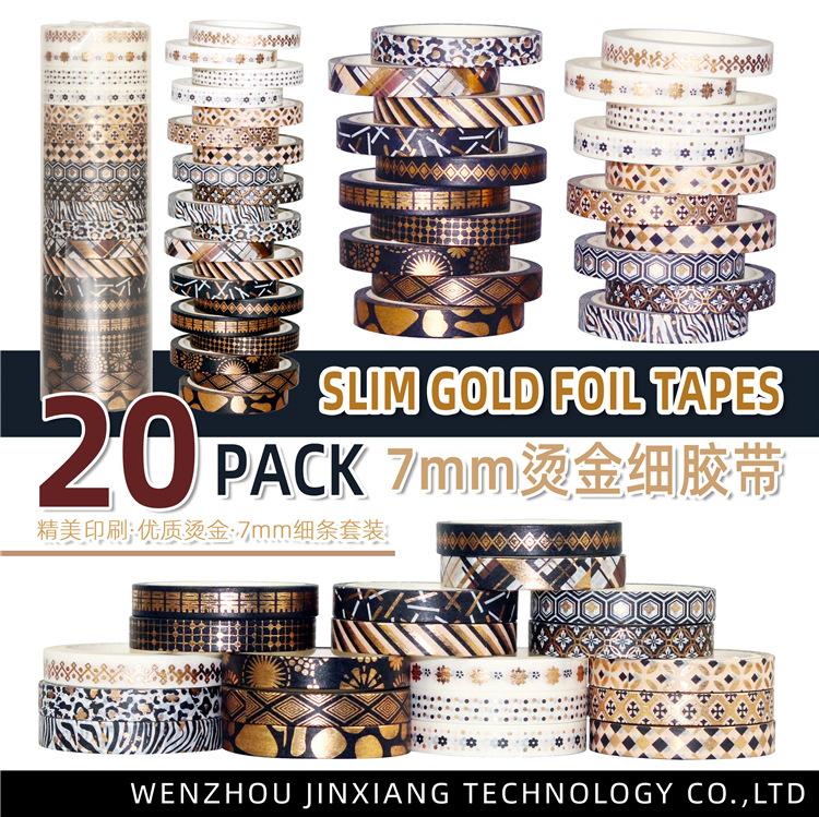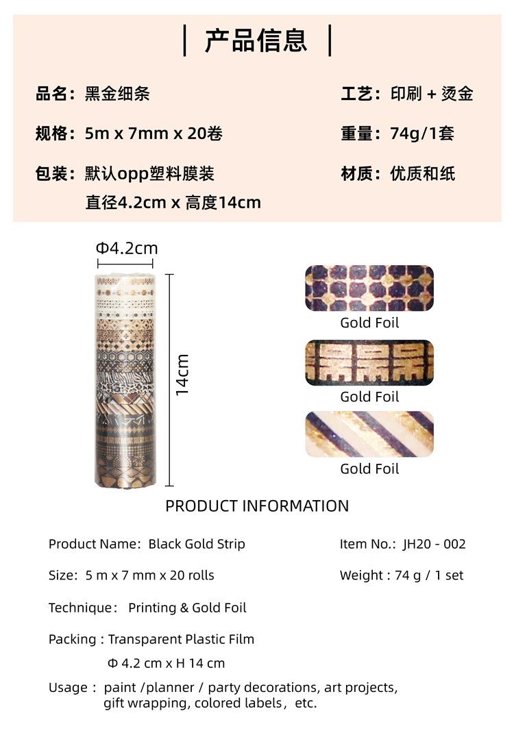 Venta al por Mayor Transfronteriza Suministro de Amazon Cinta Washi Estampada en Caliente Rayas Finas Oro Negro DIY Decorativa Cinta de Bolsillo