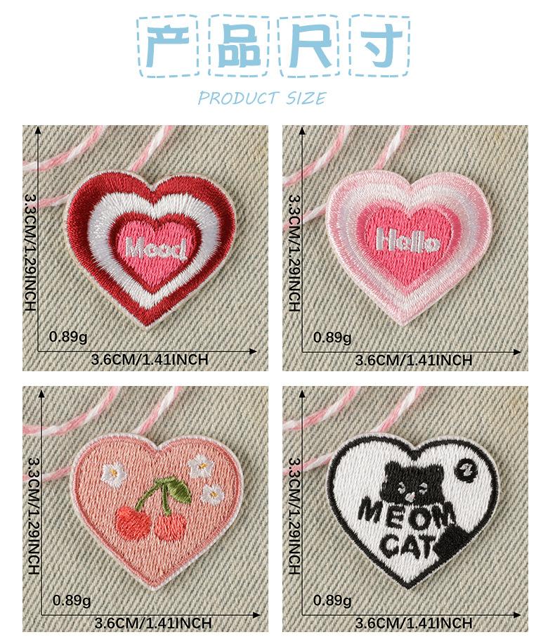 Etiqueta de bordado, pegatina de bordado, autoadhesiva, accesorios para abrigos, bricolaje, parche de cuenta manual, dibujos animados, amor, accesorios en inglés, pegatina de tela