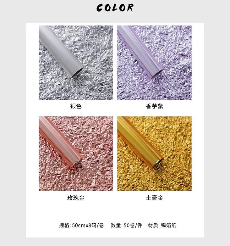 Rose gold; 50CM * 8 yards, Tuhao Gold; 50CM * 8 yards, Taro purple; 50CM * 8 yards, Silver; 50CM * 8 yards