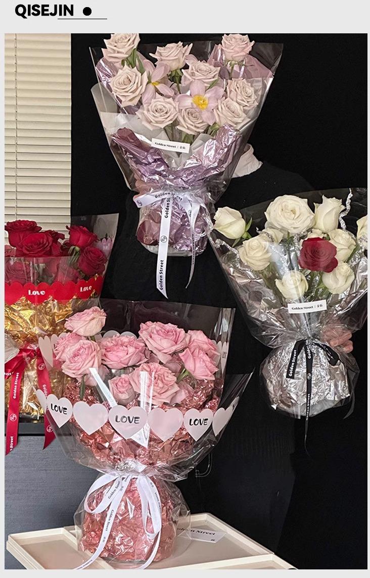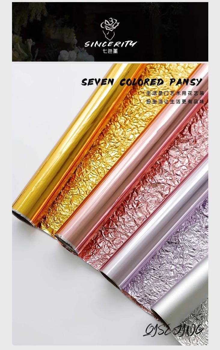 Papel de regalo con diseño de flores de pensamiento de siete colores, interior de papel de aluminio plástico, nombre interior, paquete de material de regalo floral, papel de flores, embalaje de regalo