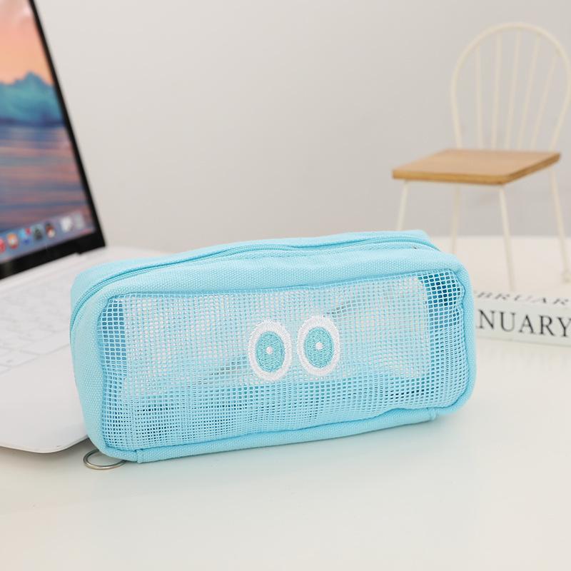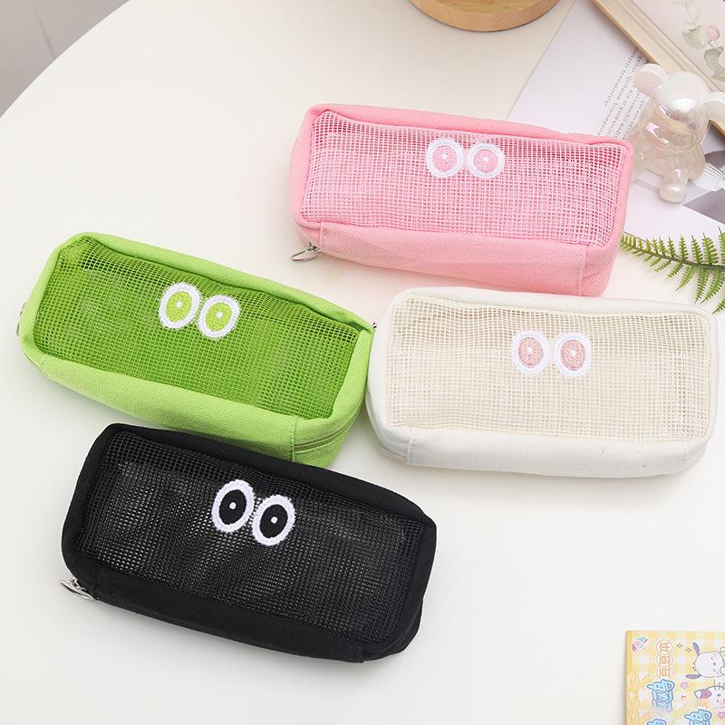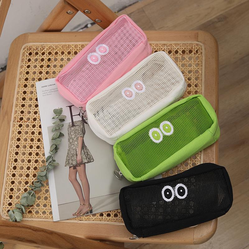 Estilo ins Estilo Coreano Dibujos Animados Lindo Verde Ojos Grandes Estuche para Lápices Bolsa de Aseo Gran Capacidad Estudiante Mujeres Bolsa de Almacenamiento de Papelería