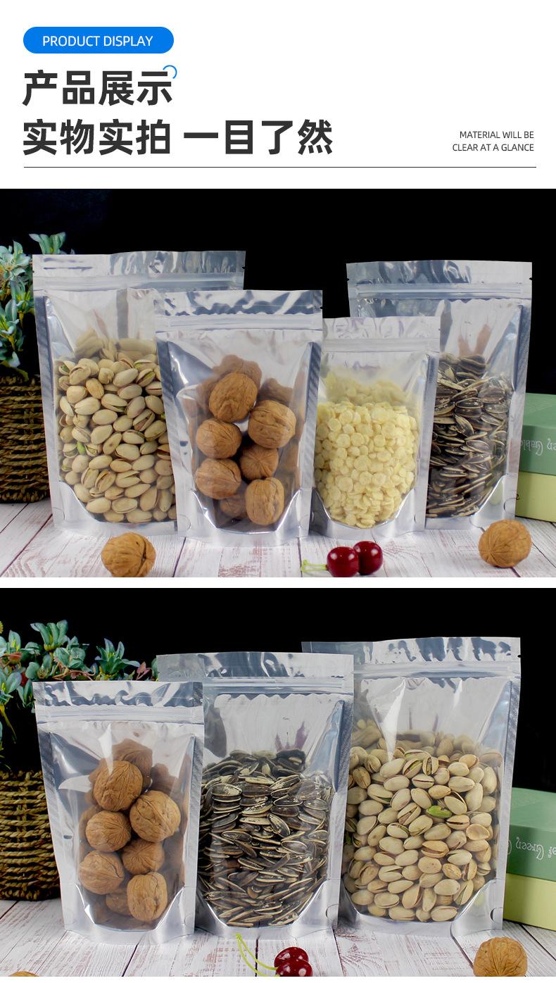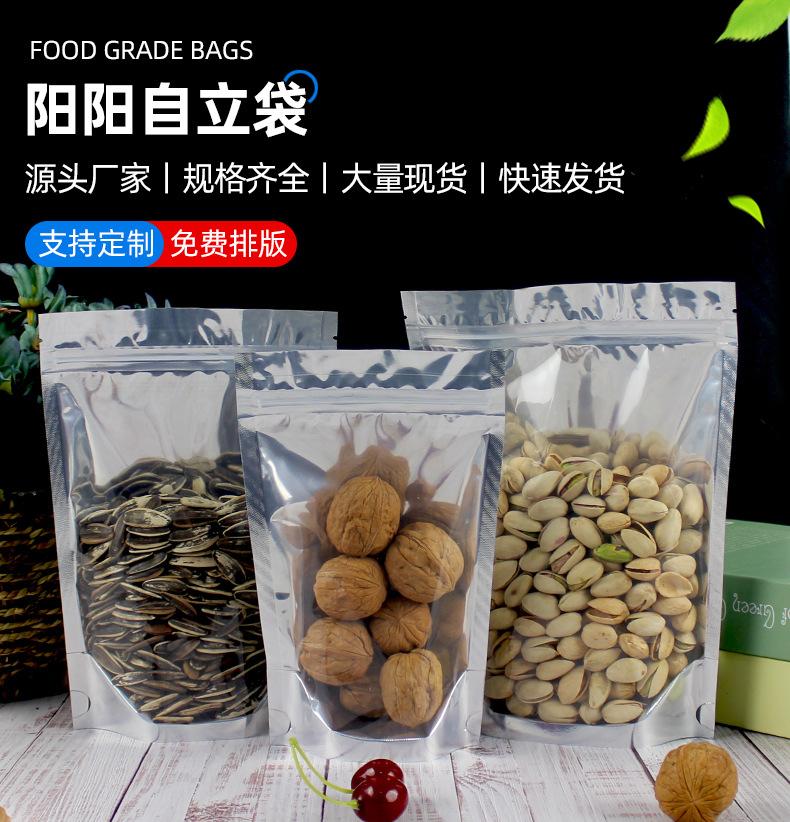 Transparent; 21*35+5 yin and yang stand-up bag; one side is transparent and the other is aluminum