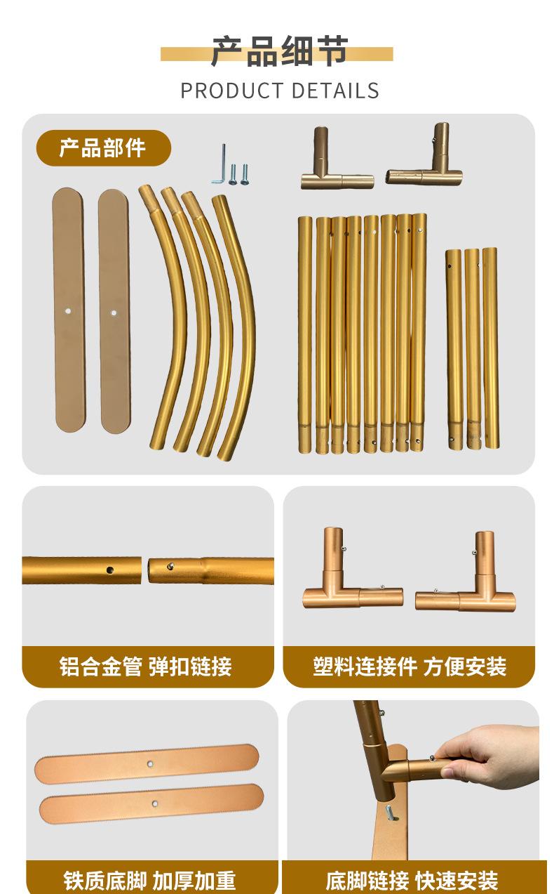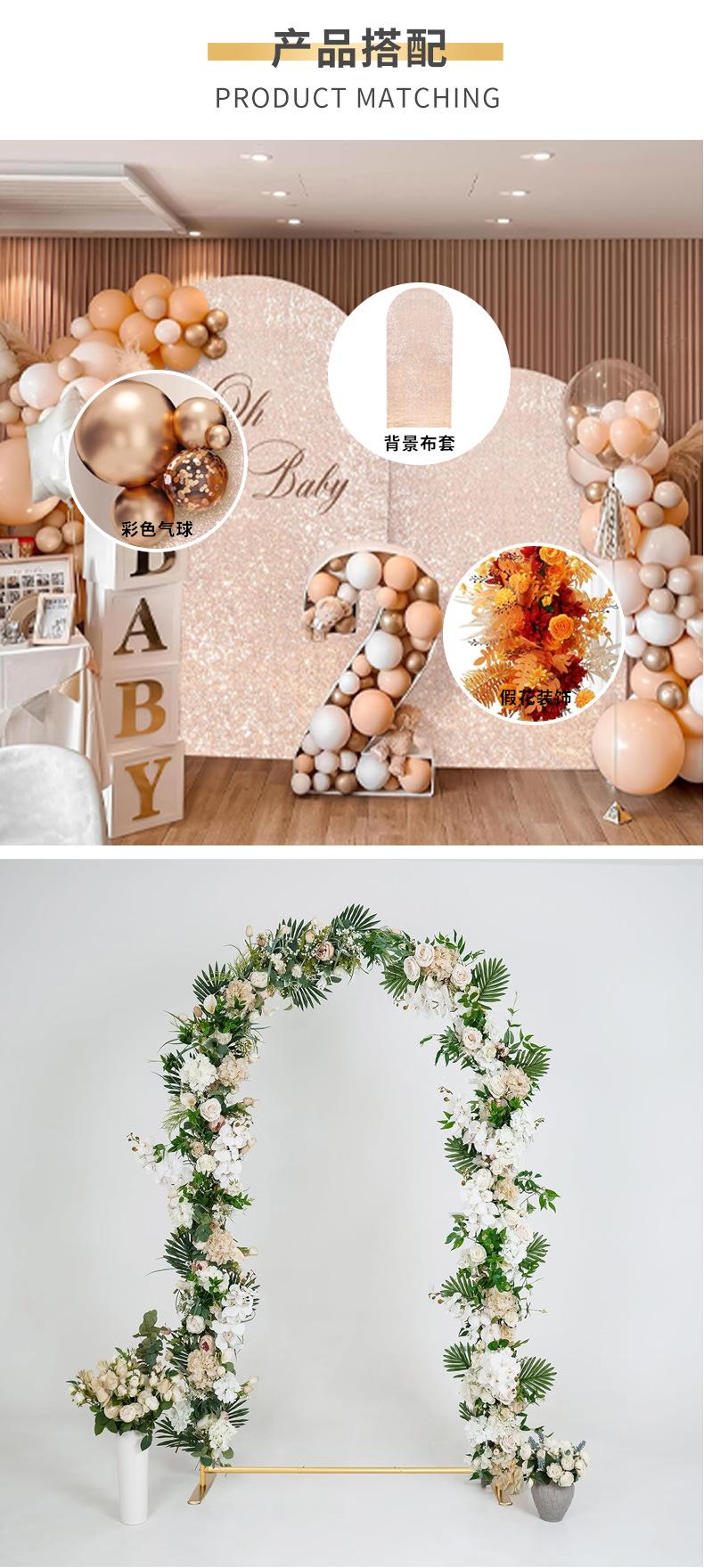 Venta caliente transfronteriza de marco de arco de aleación de aluminio dorado de 7.2 pies, soporte de globo para guía de camino de boda, soporte de fondo para fotografía