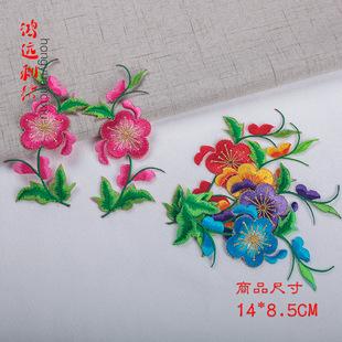 Venta directa de fábrica, accesorios de vestuario escénico, vestido, patrón cheongsam, parche de tela bordado étnico, aplique bordado de peonía tridimensional