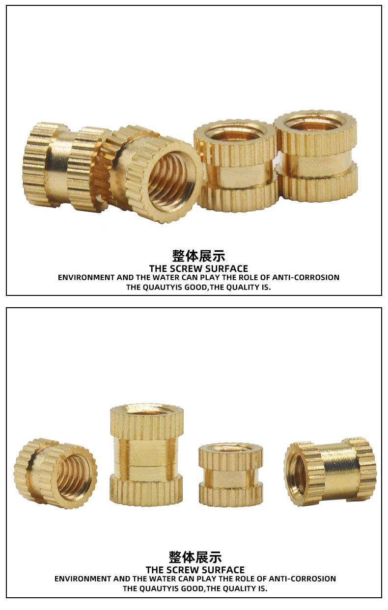 Tuerca de cobre moleteada por inyección M1-M10, tuerca moleteada de cobre recta, inserto de cobre incrustado, inserto de tuerca termofusible