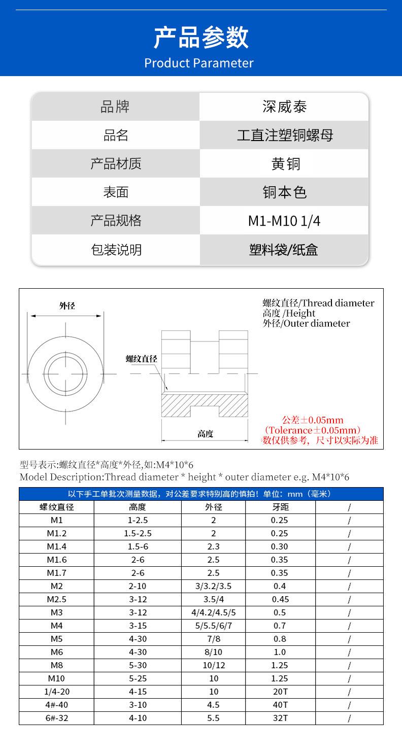 M1.0*1.5*2 (straight copper nut), M1.0*1.8*2 (straight copper nut), M1.0*2*2 (straight copper nut), M1.0*2.5*2...