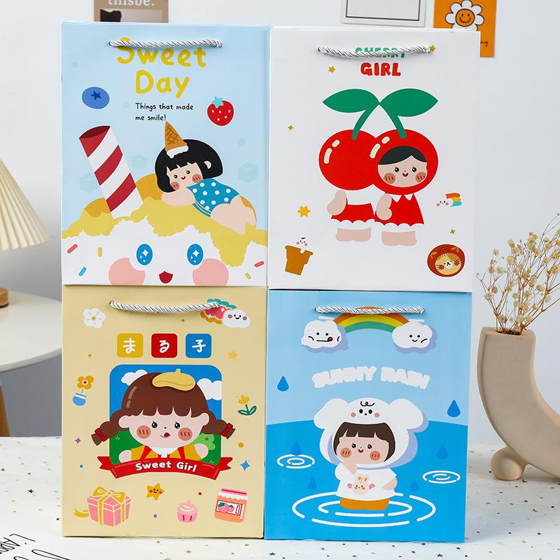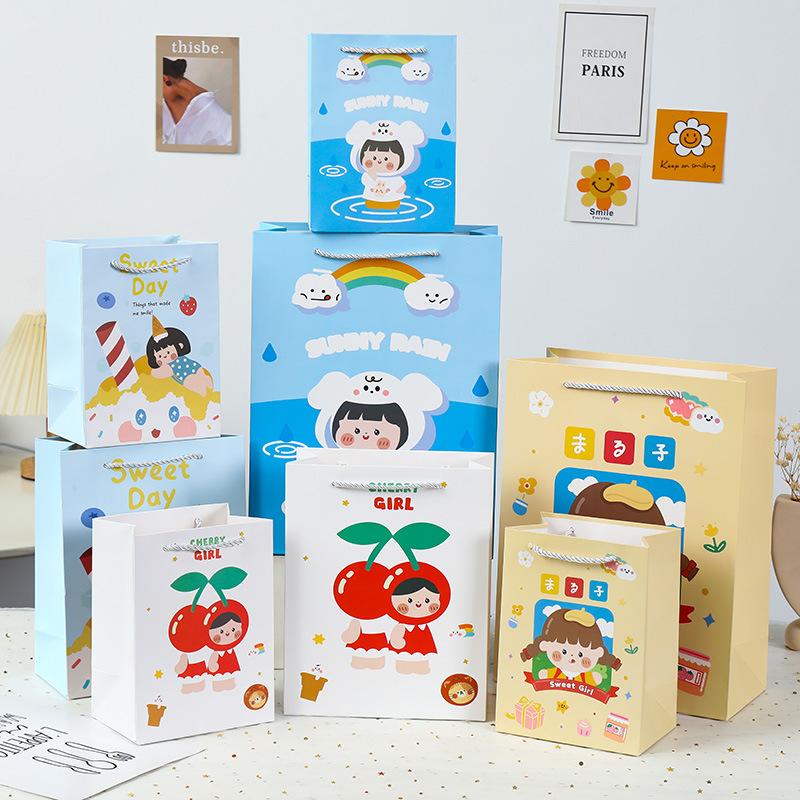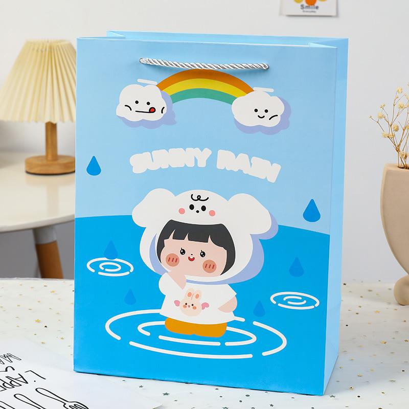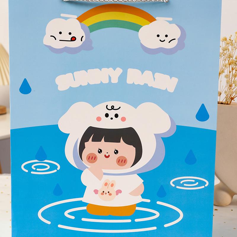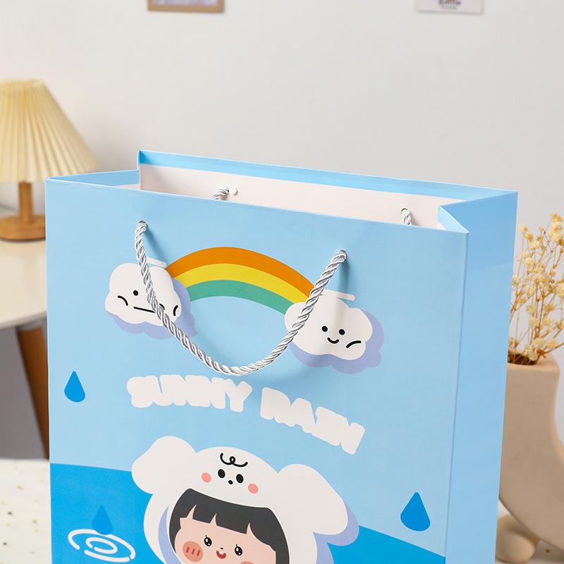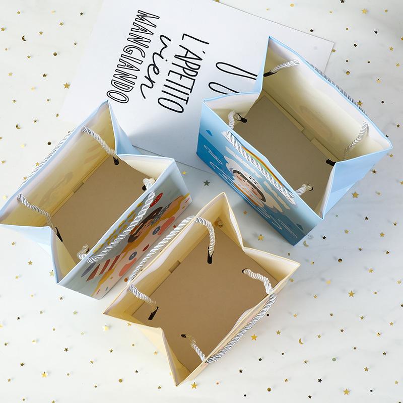 Bonita bolsa de regalo de cartón blanco grueso con dibujos animados, bolsa de papel para envolver regalos de cumpleaños, bolsa de regalo para niños con diseño de luna llena