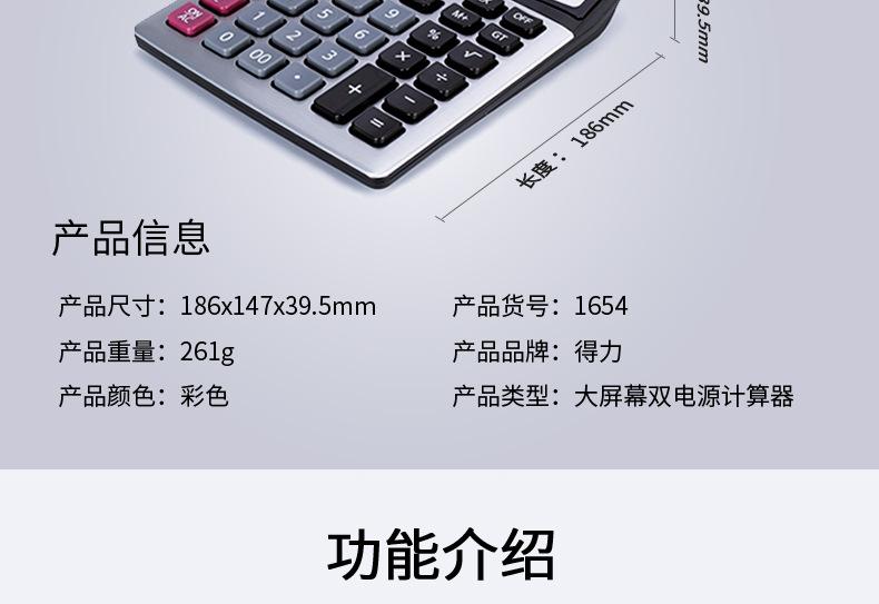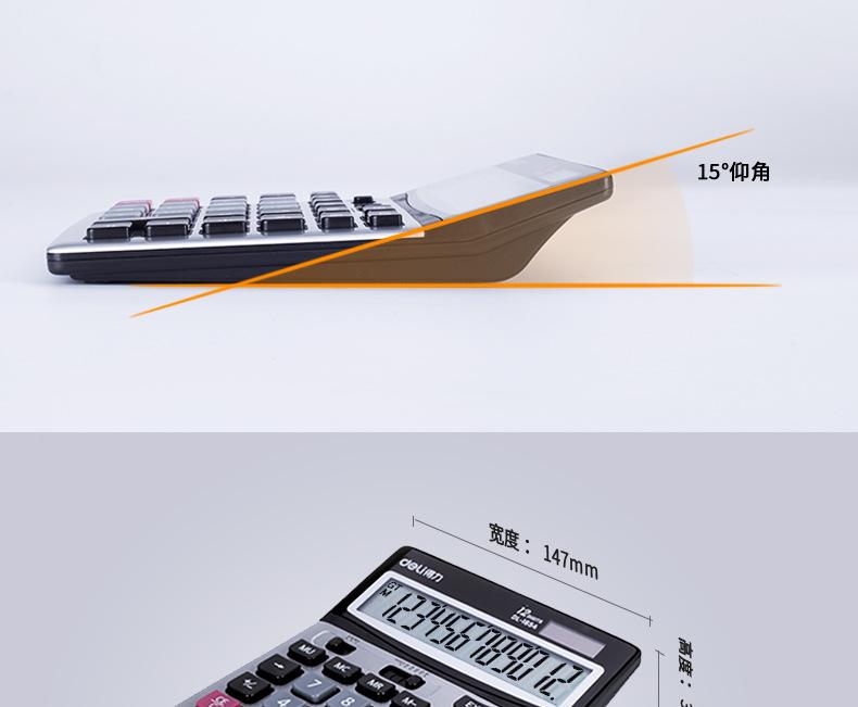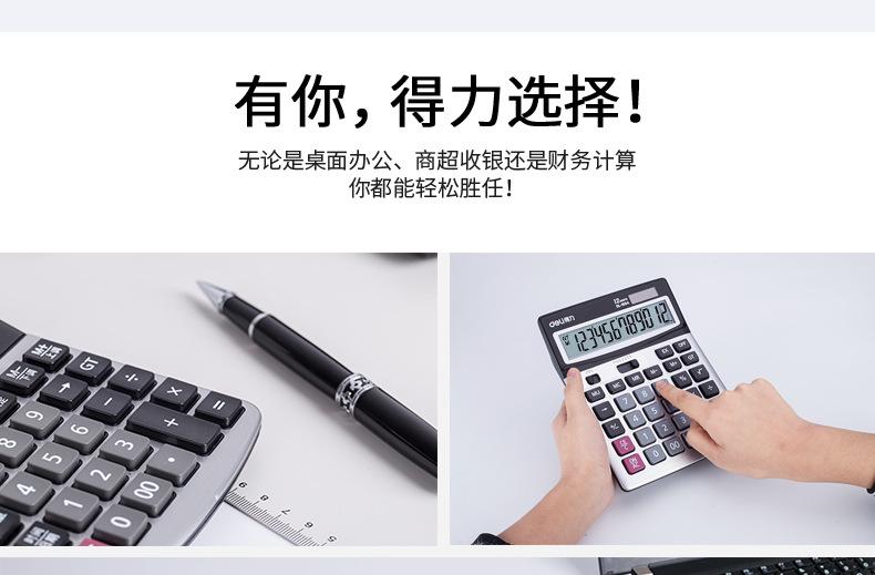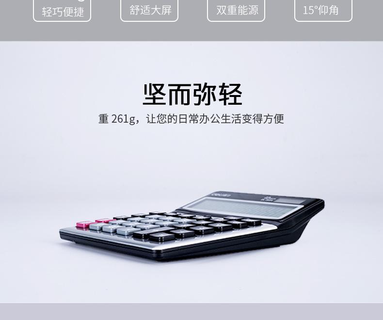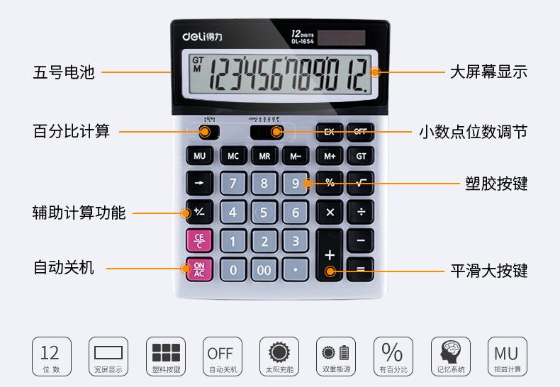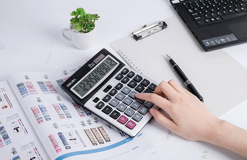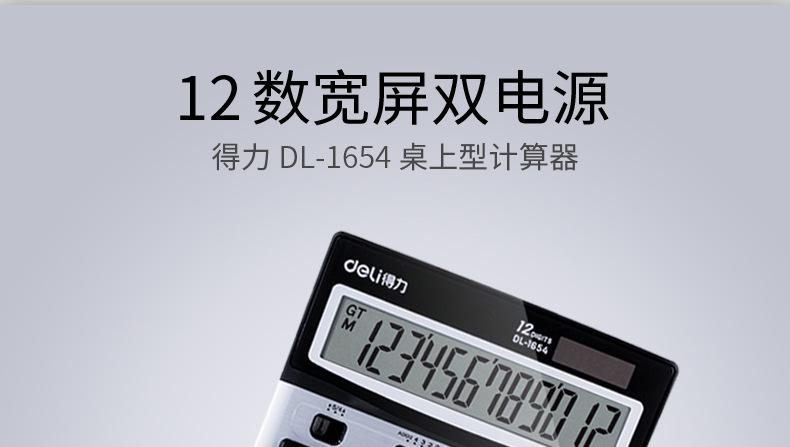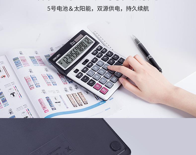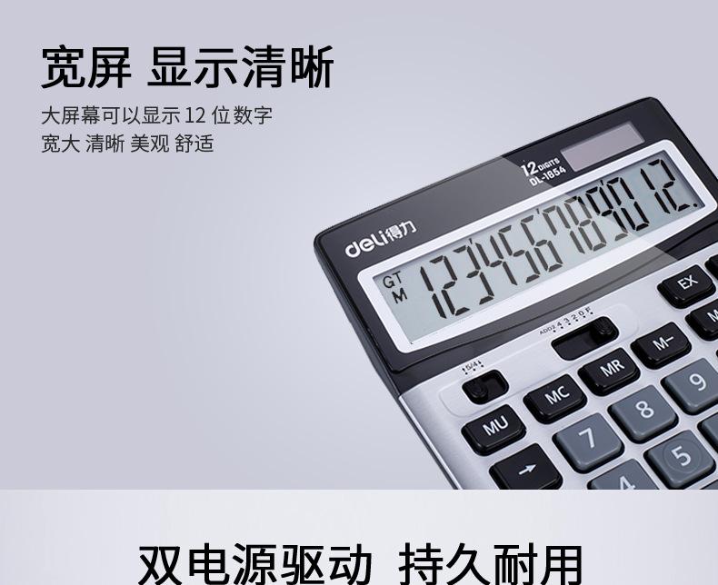 Calculadora solar de doble potencia Deli 1654, con pantalla grande de 12 teclas y contabilidad financiera.
