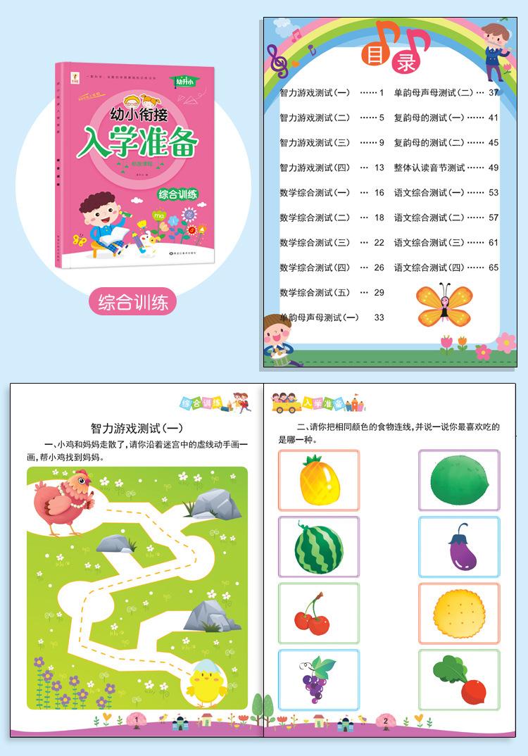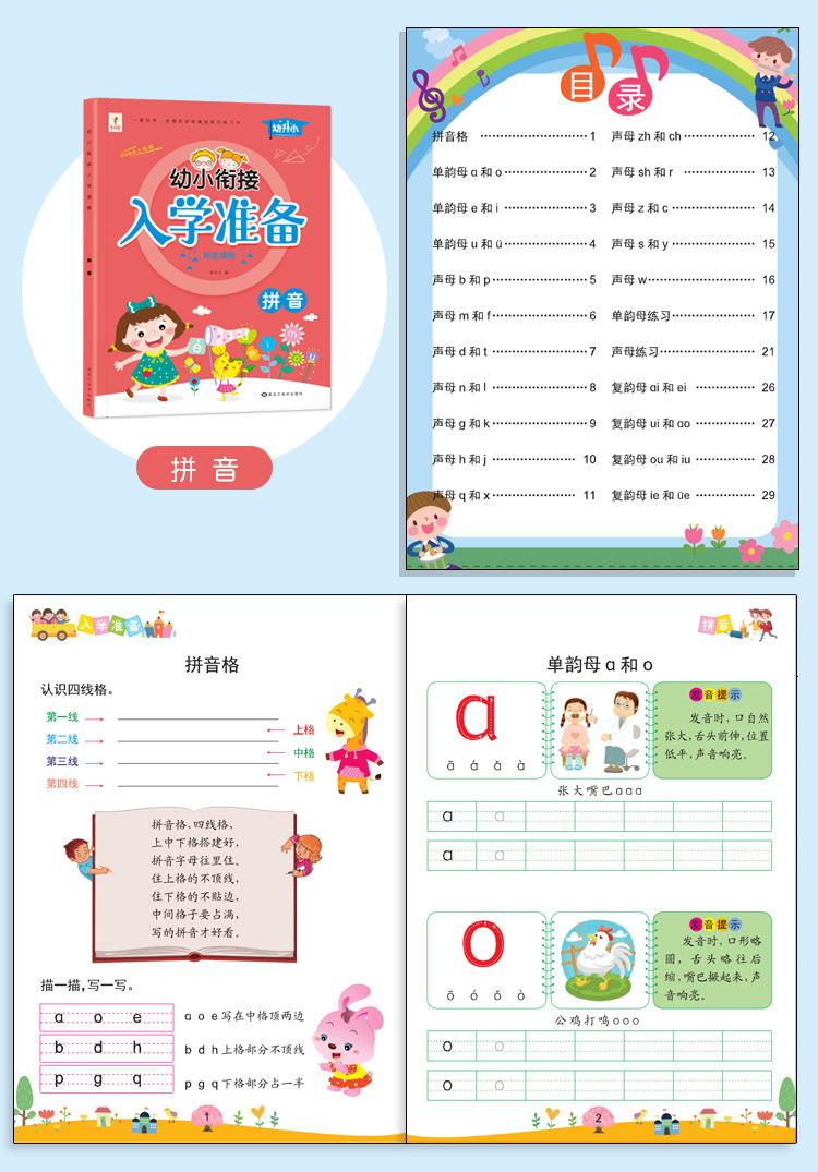 Conexión de la escuela secundaria Preparación escolar Matemáticas chinas Pinyin Jardín de infantes Conjunto completo de libros de texto de integración de la escuela secundaria Libro de práctica