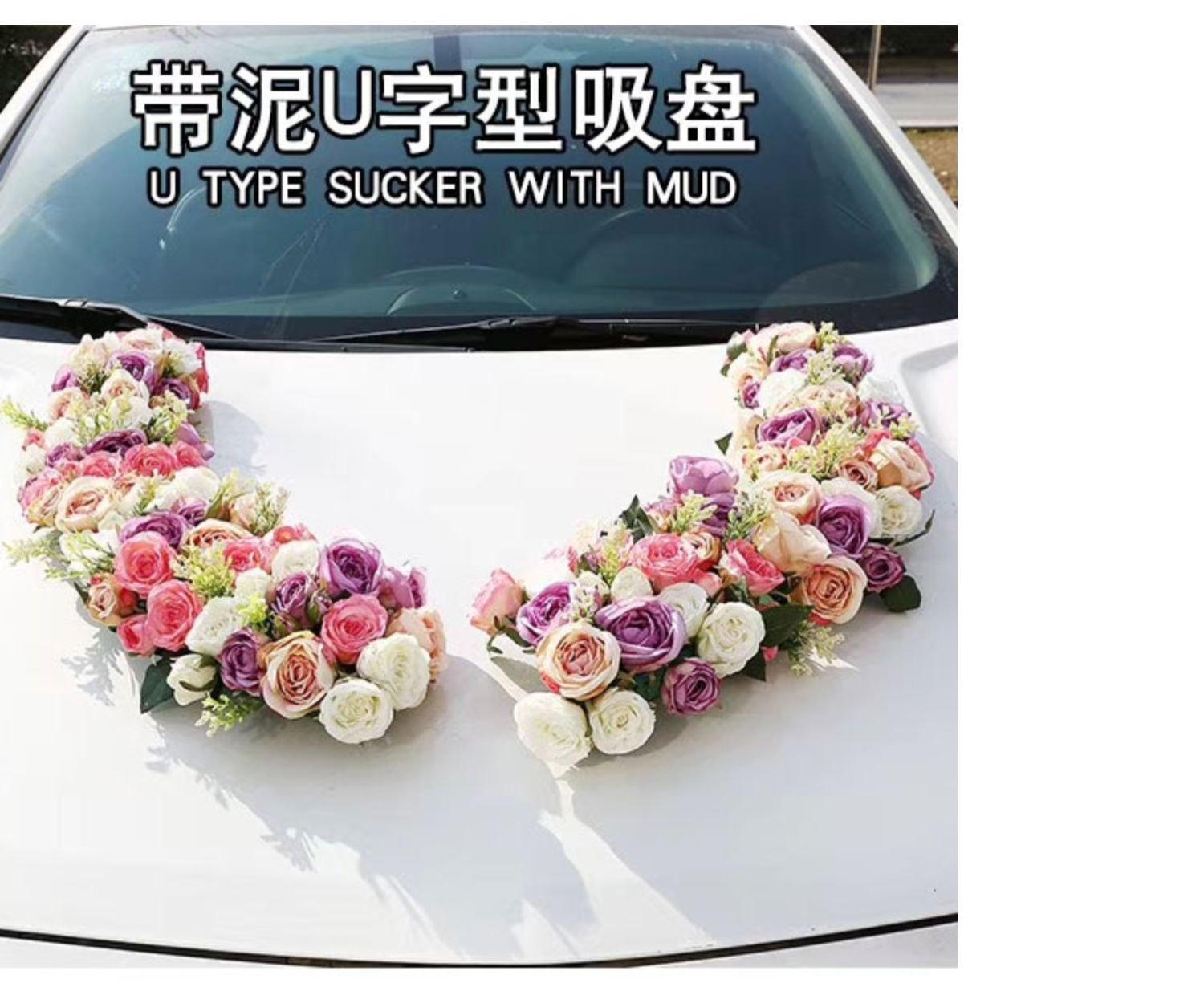 Decoración de coche de boda suministros de flores para la cabeza del coche barro floral en forma de U ventosa para coche de boda flor barro floral para coche de boda en forma de U "recomendación de influencer"