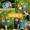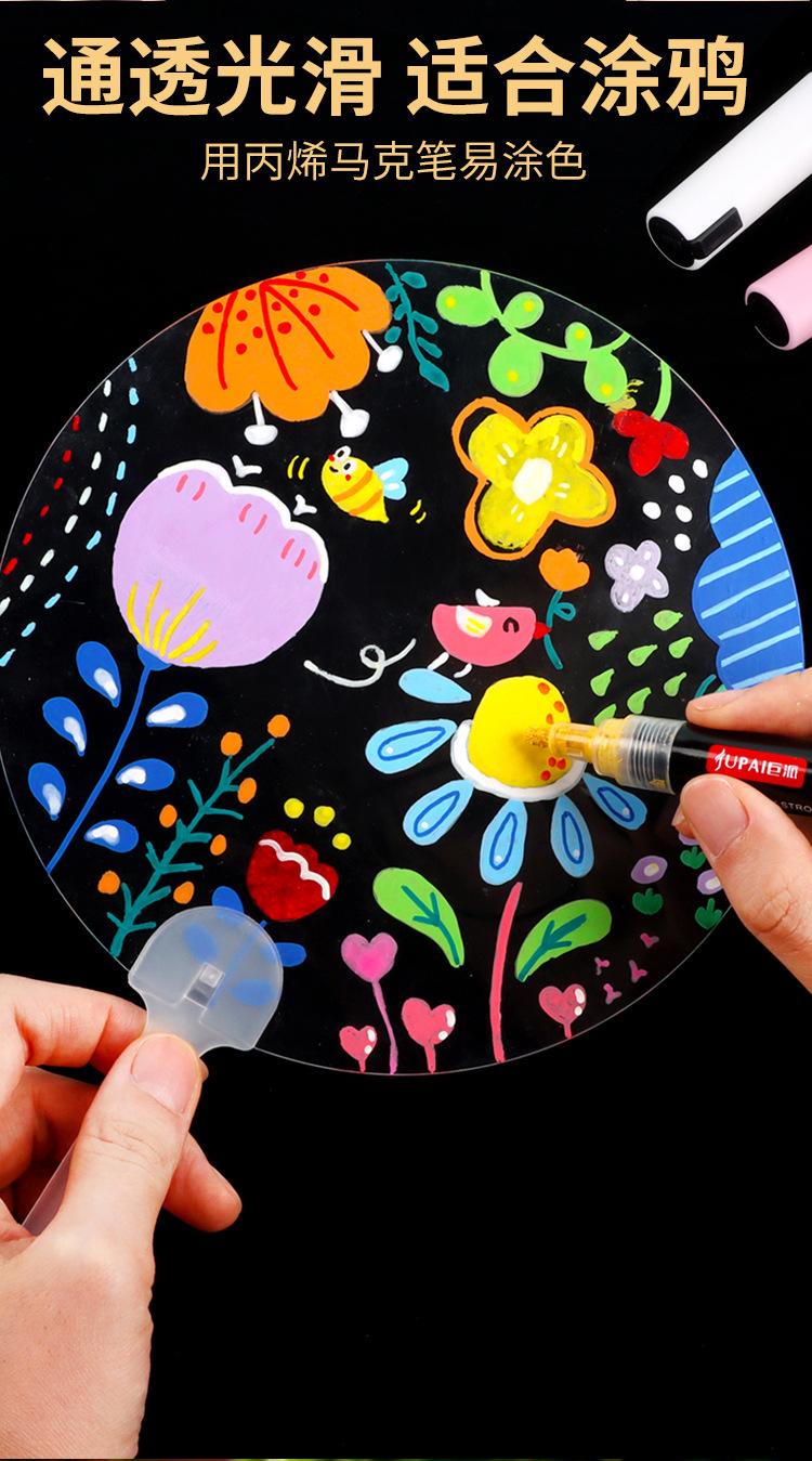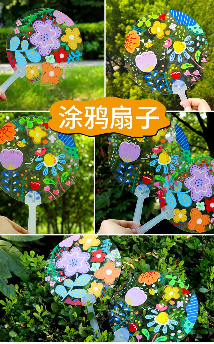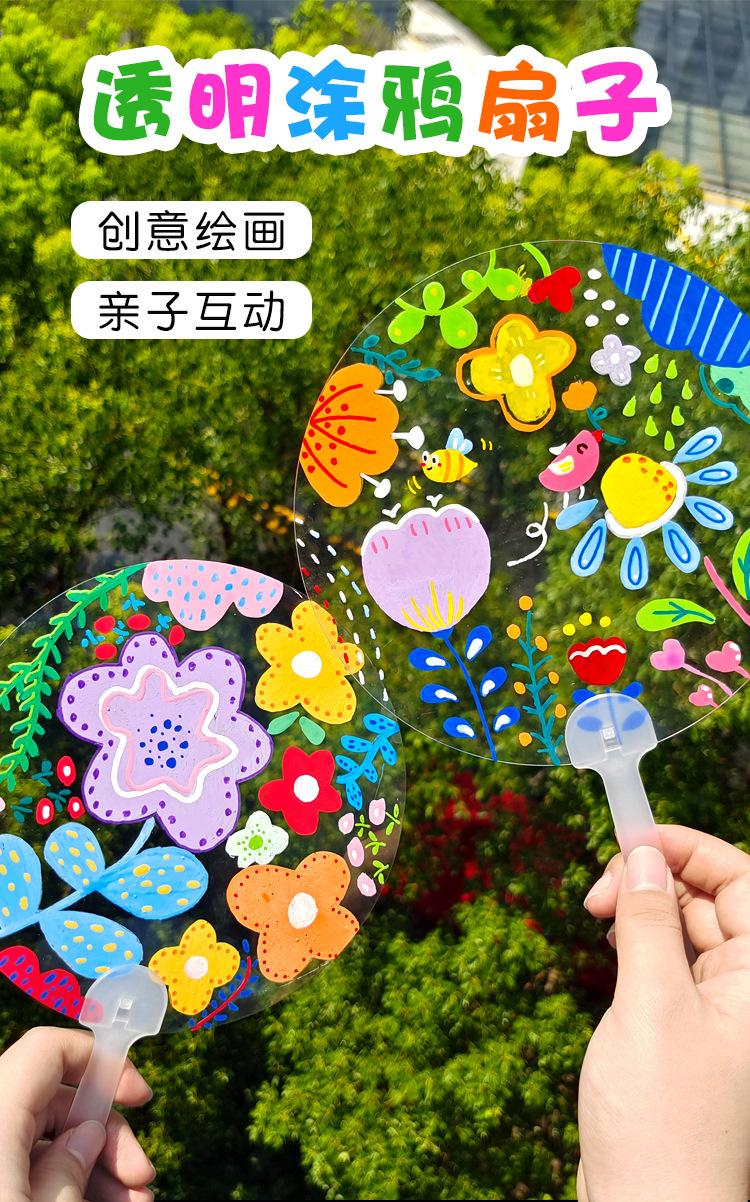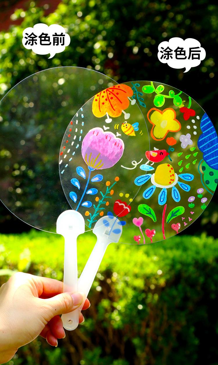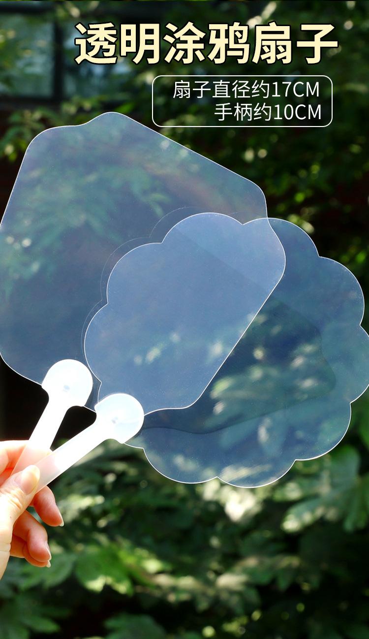 Abanico transparente de bricolaje, redondo, pintado a mano, de PVC en blanco, pequeño, redondo, de plástico, para niños, hecho a mano, con pintura de graffiti, para verano.