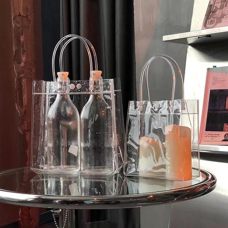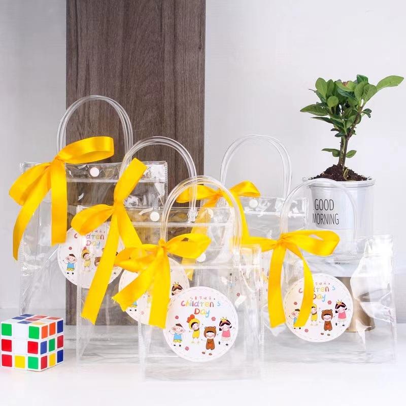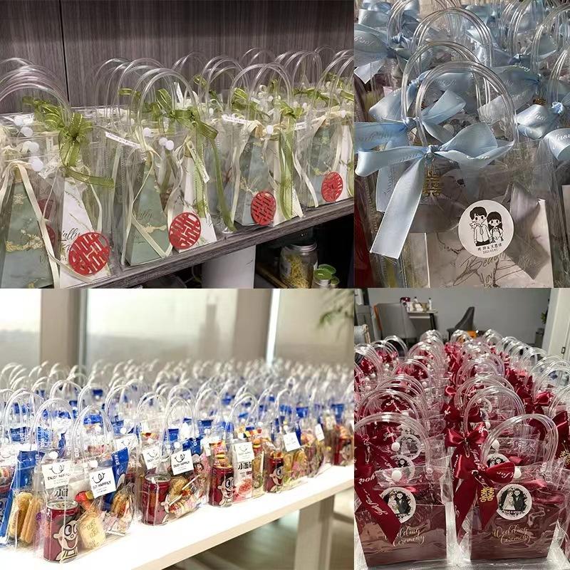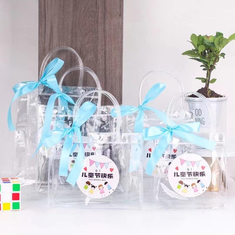 Bolsa de regalo de PVC transparente, bolsa de embalaje para Navidad, cumpleaños, bolsa de regalo de mano con sensación de alto nivel.