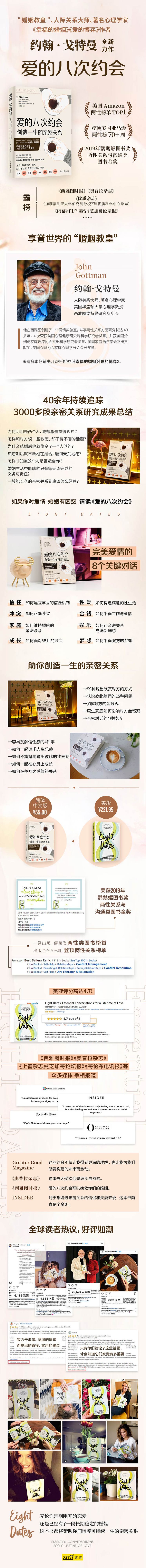 Por lo tanto, a través de años de investigación, el Dr. Gottman primero identificó las ocho áreas donde las dificultades y los conflictos ocurren con mayor frecuencia en la vida de las parejas: confianza, conflicto, sexo, dinero, familia, diversión y aventura, crecimiento espiritual y sueños. Luego, el Dr. Gottman diseñó ocho citas íntimas con ocho temas, y cada cita representa una invitación a una conversación. En una atmósfera de citas especialmente dispuesta, los dos pueden establecer una conversación íntima y dejar que la pareja comparta sus verdaderos pensamientos internos contigo. Tal conversación te permite comprender las razones detrás de sus creencias, comportamientos y pensamientos.