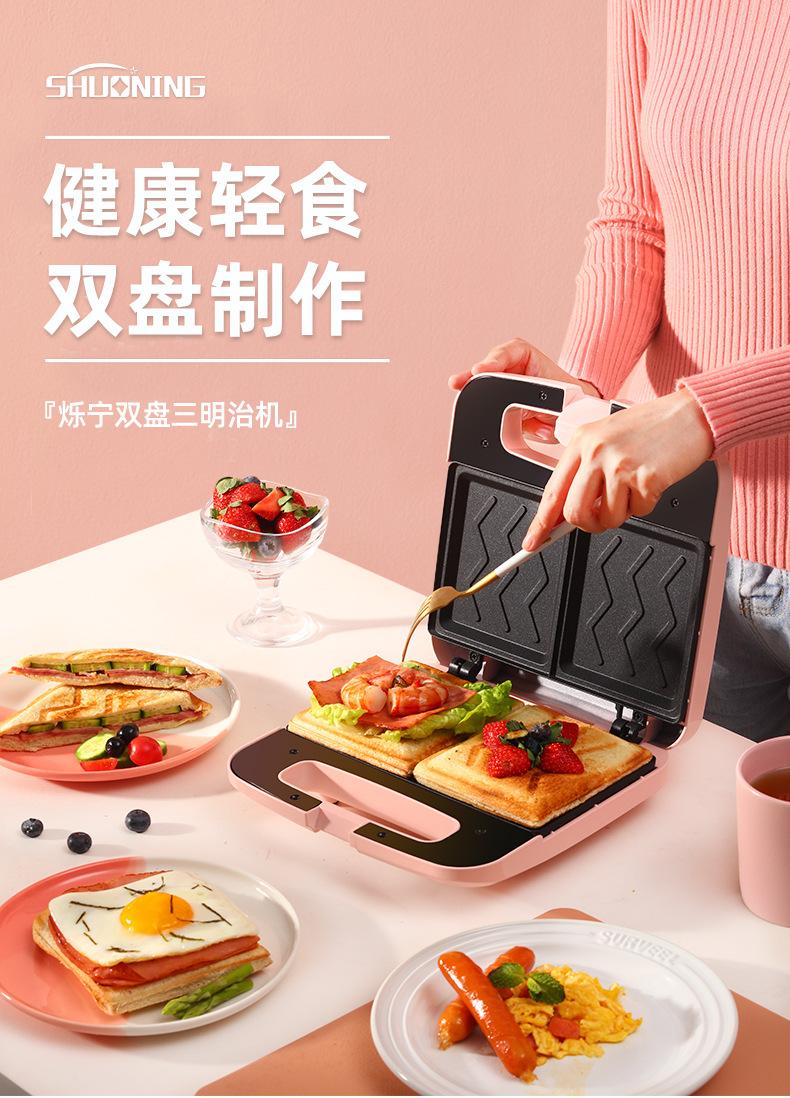 Qining mini tostadora automática multifunción calentamiento doble cara para el hogar máquina para sándwiches desayuno