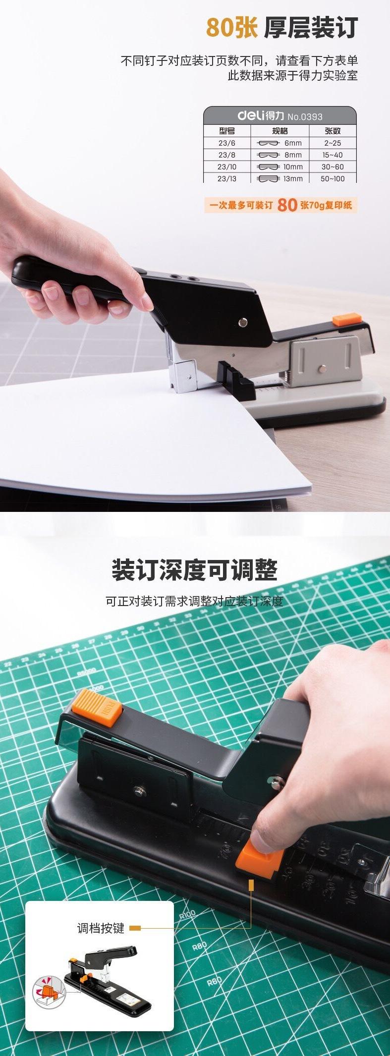 Grapadora engrosada de alta resistencia Deli 0390, grapadora de capa gruesa, máquina de encuadernación de papel de 80 páginas