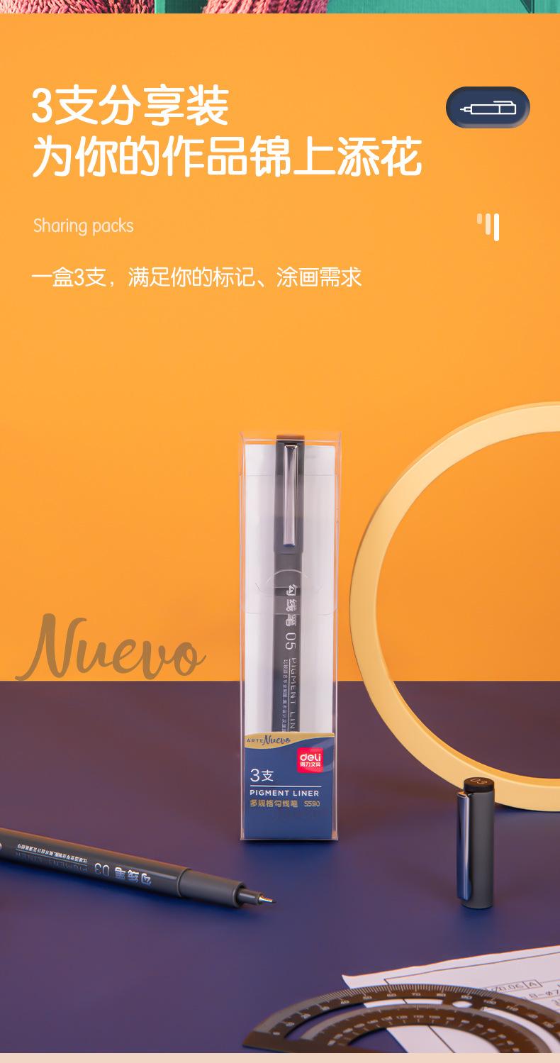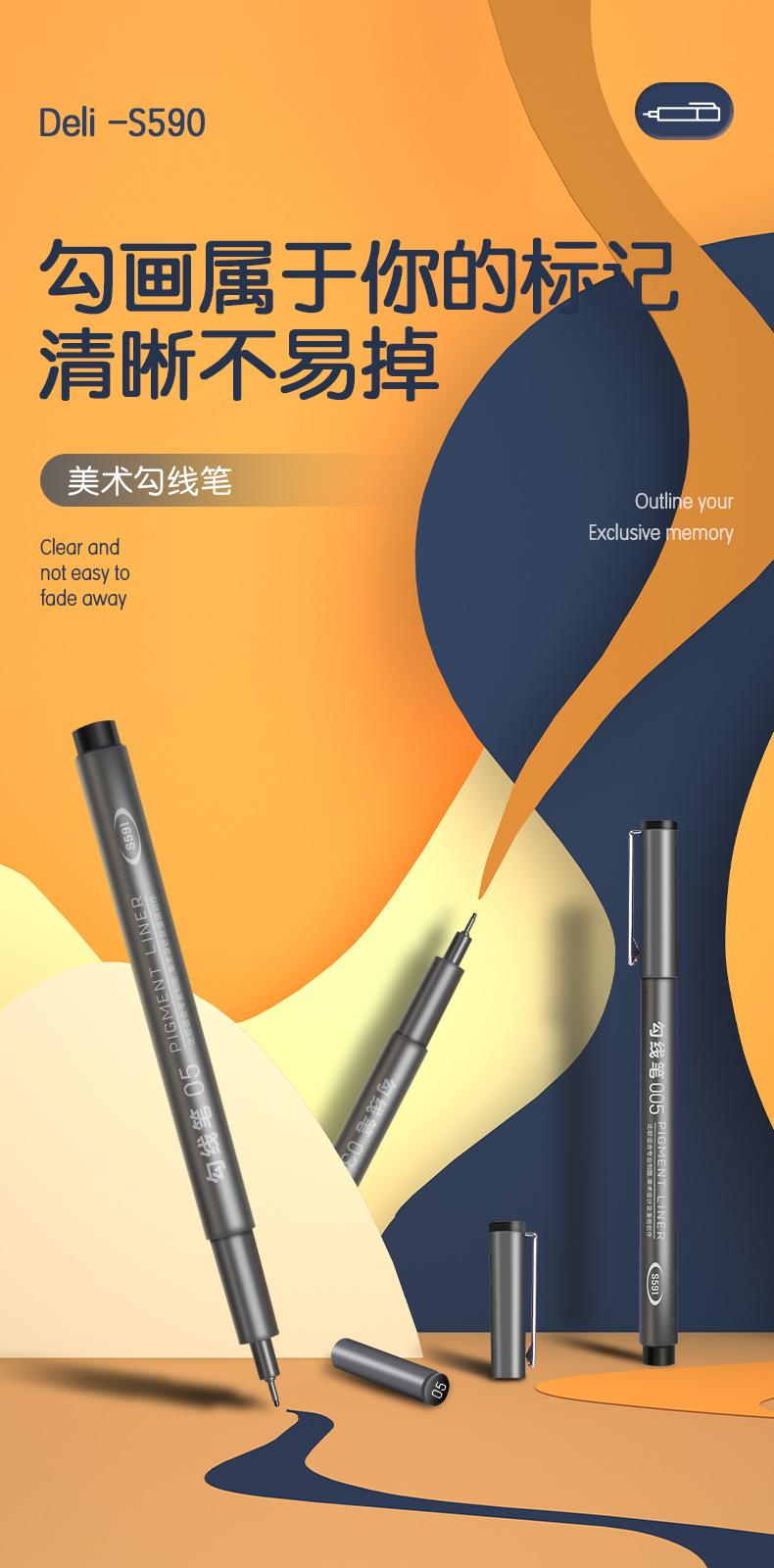 Deli bolígrafo de gancho impermeable con punta de aguja de múltiples especificaciones, bolígrafo de trazo para dibujos animados a mano, bolígrafo para dibujo artístico, bolígrafo de calco de marcas