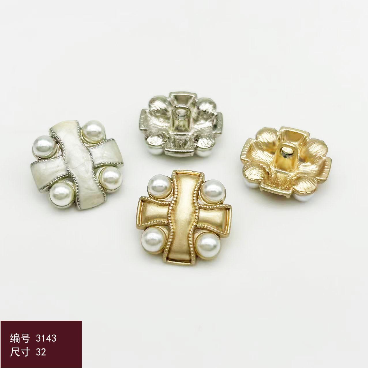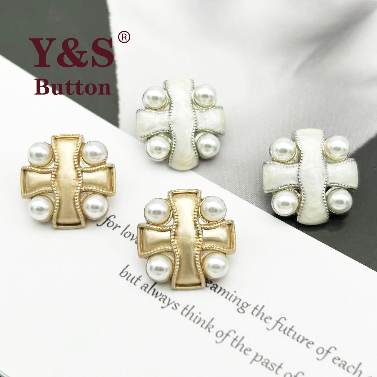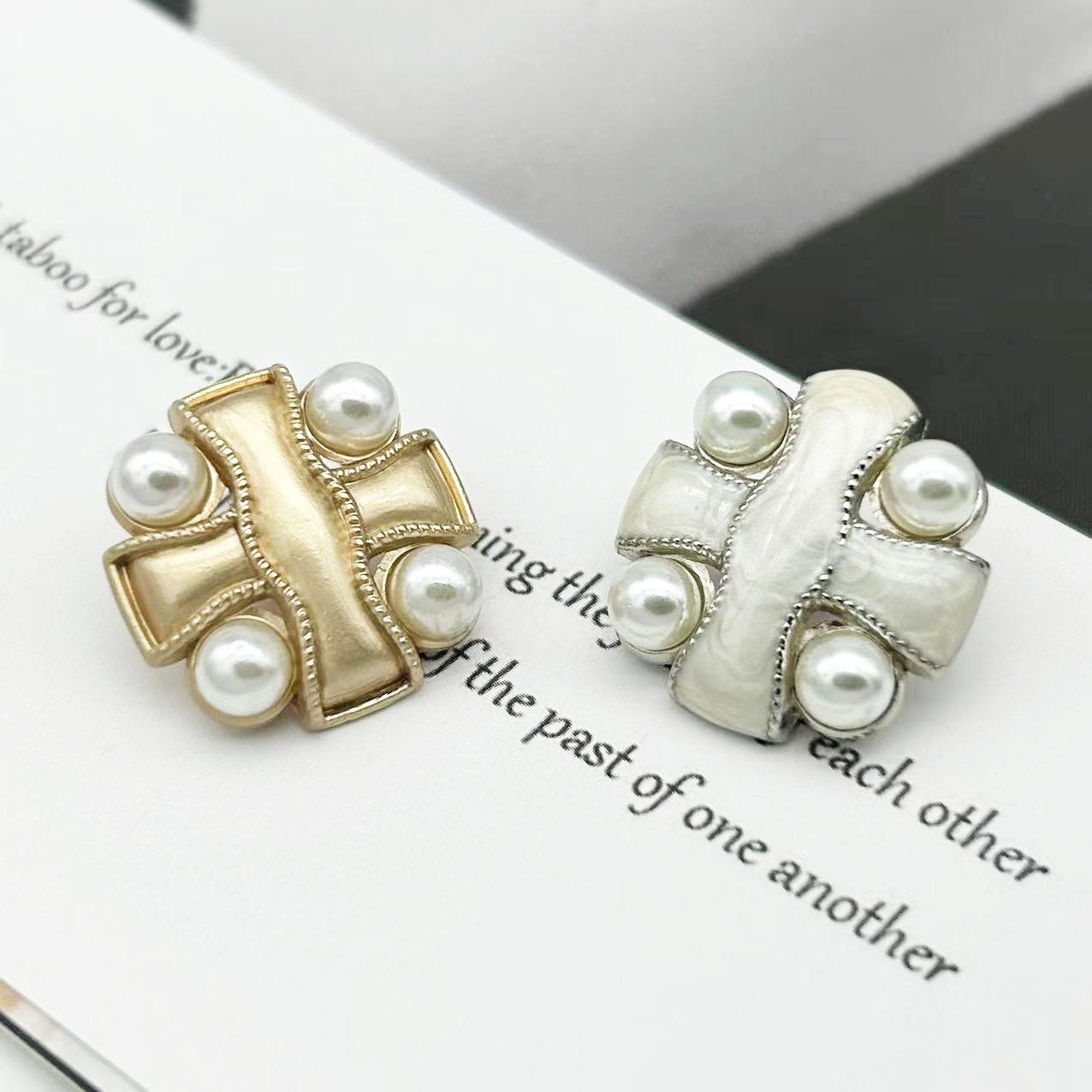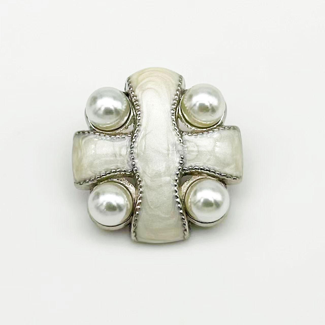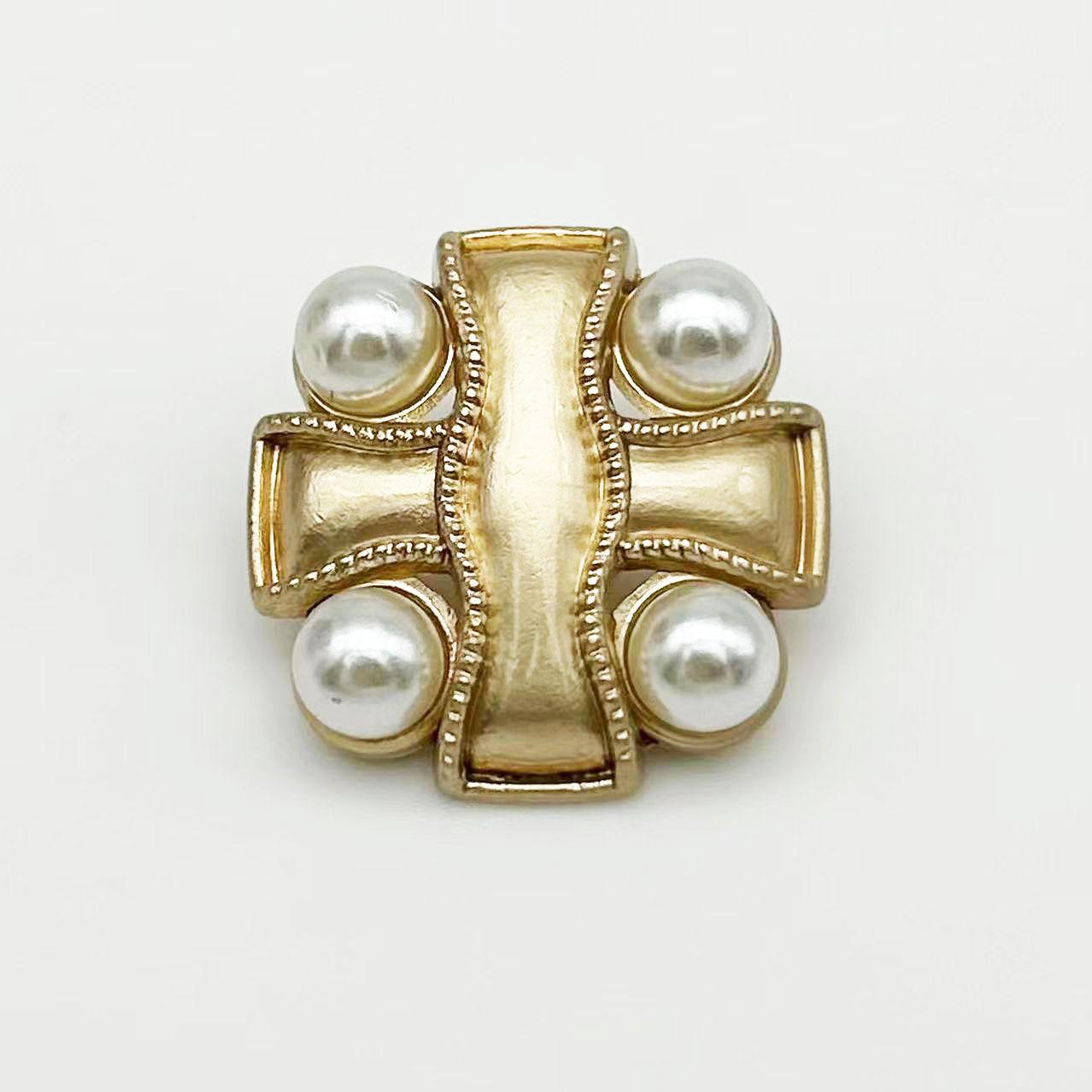 Botón Metálico de Perla con Forma de Cruz Estilo Chanel Suéter Chaqueta Suéter Botón Decorativo