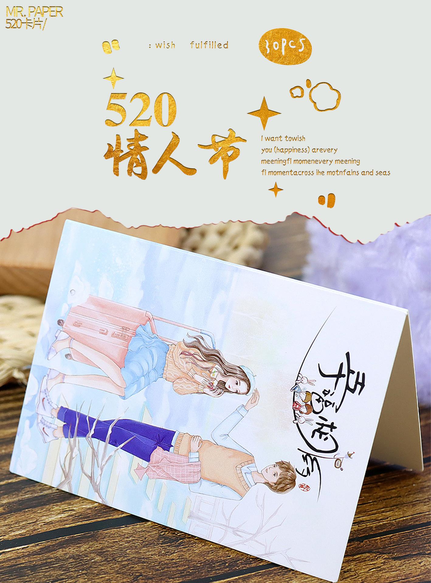 Tarjeta de Felicitación 520 para el Día de San Valentín Pequeña Fresca Simple Postre Horneado Decoración de Pastel Tarjeta de Bendición Universal Plegable