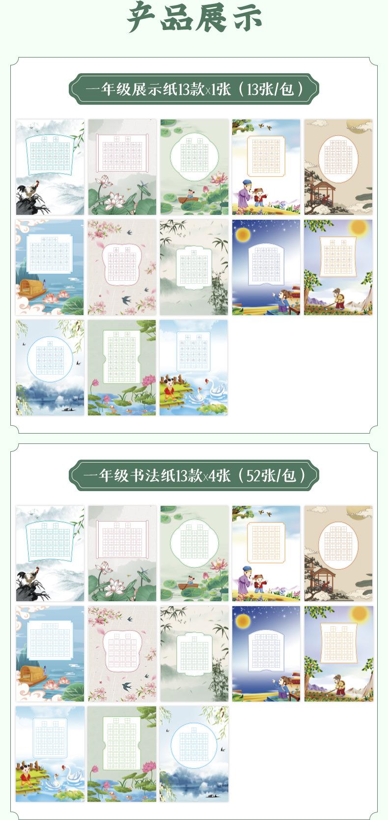 Grade 1 Set (Calligraphy Paper + Display Paper), 2nd grade set (calligraphy paper + Display Paper), Grade 3 Se...