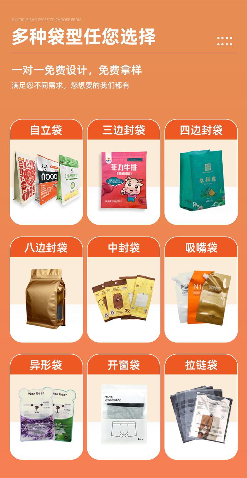 Empaque de Alimentos Bolsa de Empaque Sellada por Ocho Lados Bolsa de Té Plástico Autoportante Autosellable Bolsa para Alimento de Perro Mascota Bolsa de Papel de Aluminio para Café