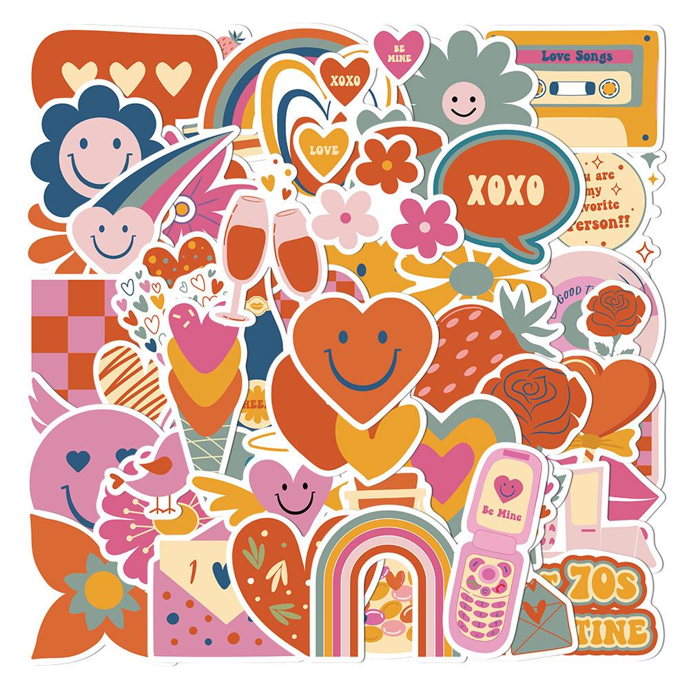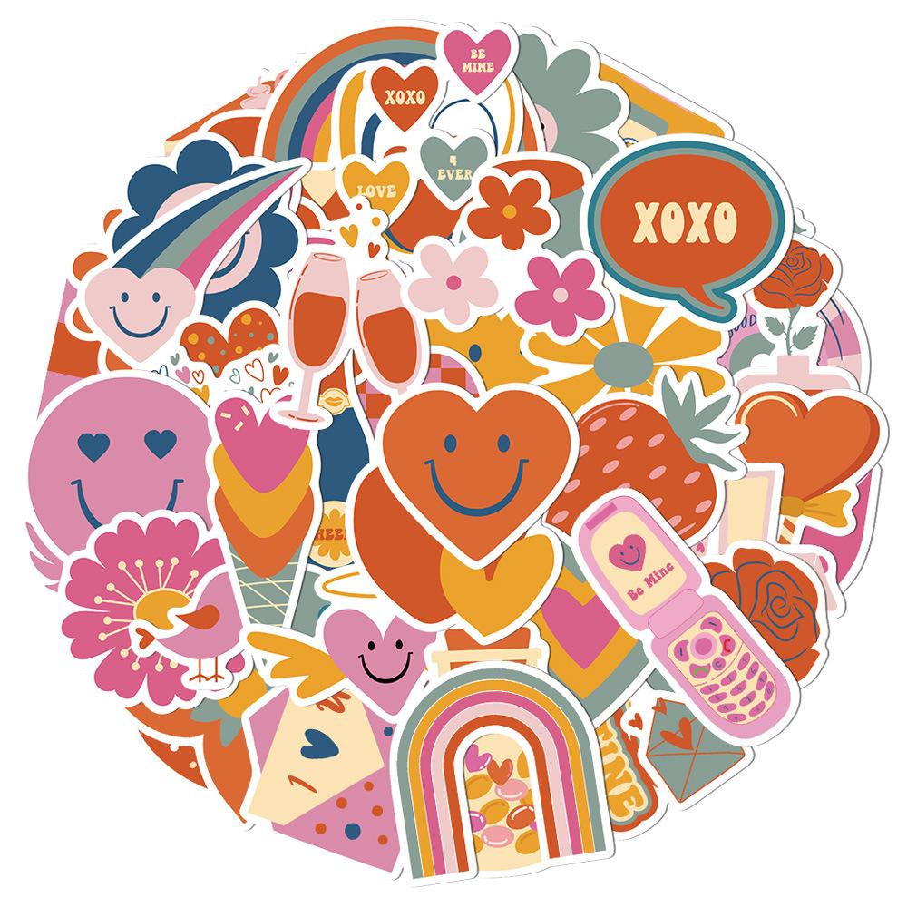 48 piezas de lindos íconos de San Valentín, lindas pegatinas frescas para computadora portátil, diario, libro, pegatinas para taza de agua
