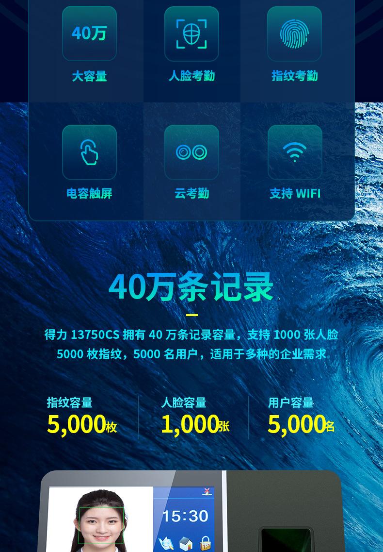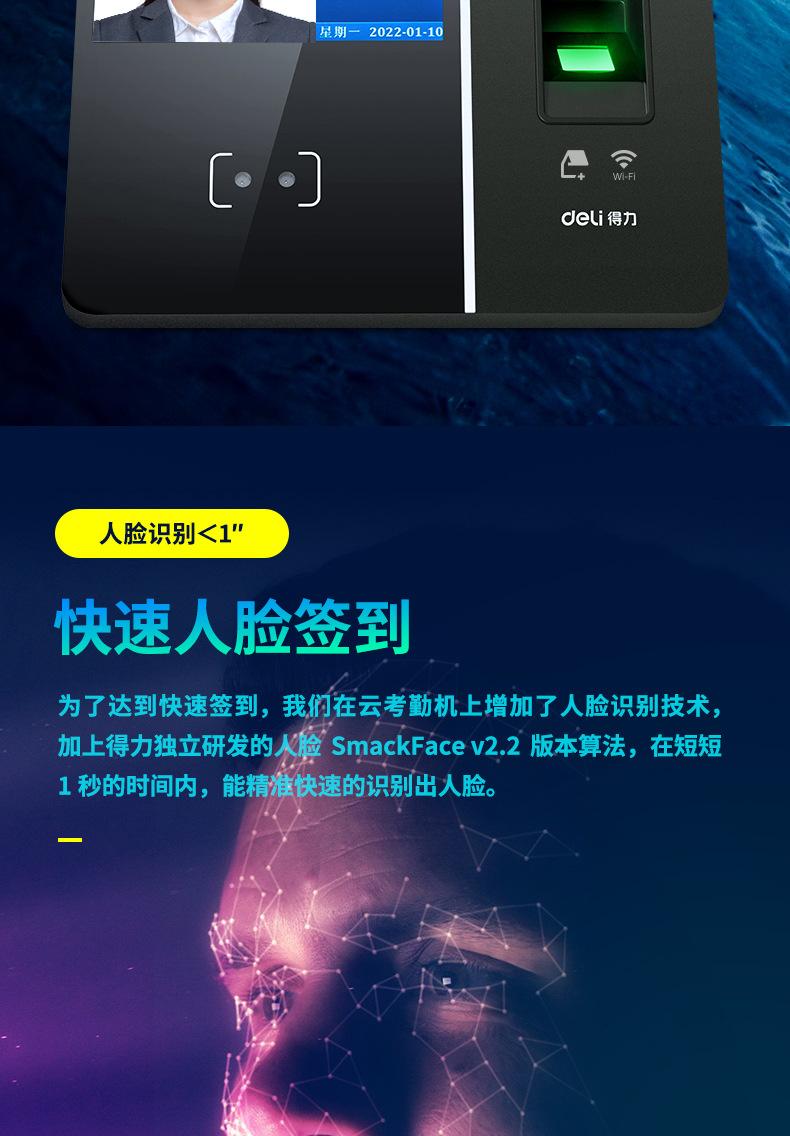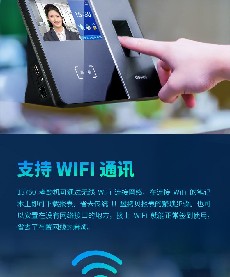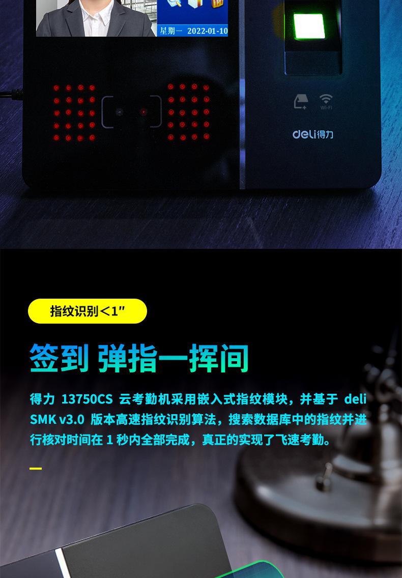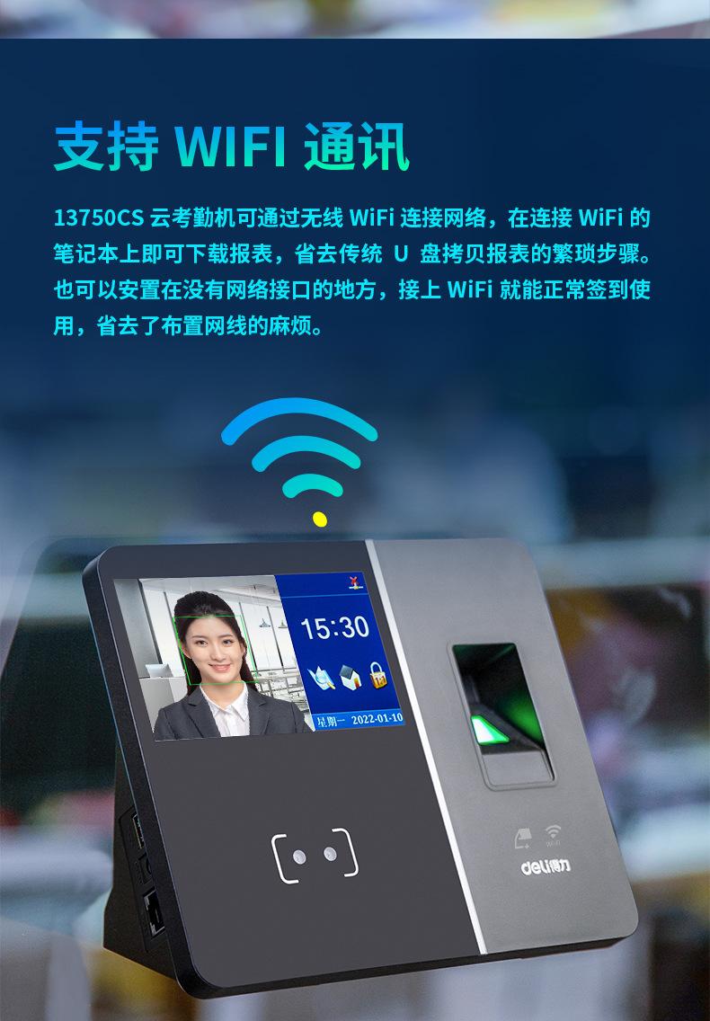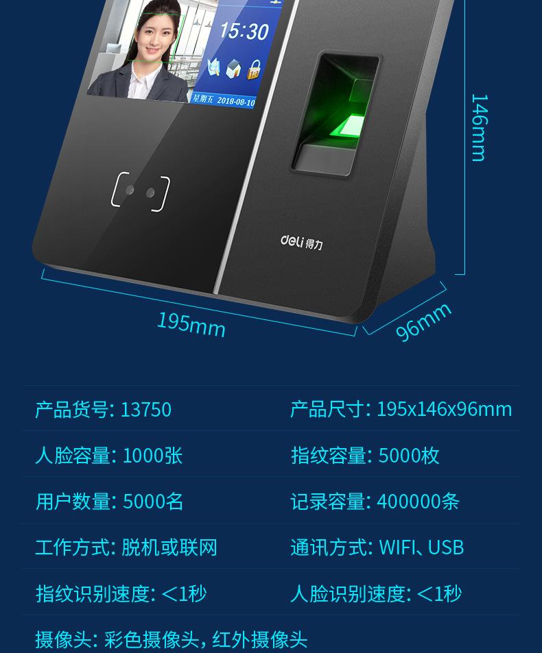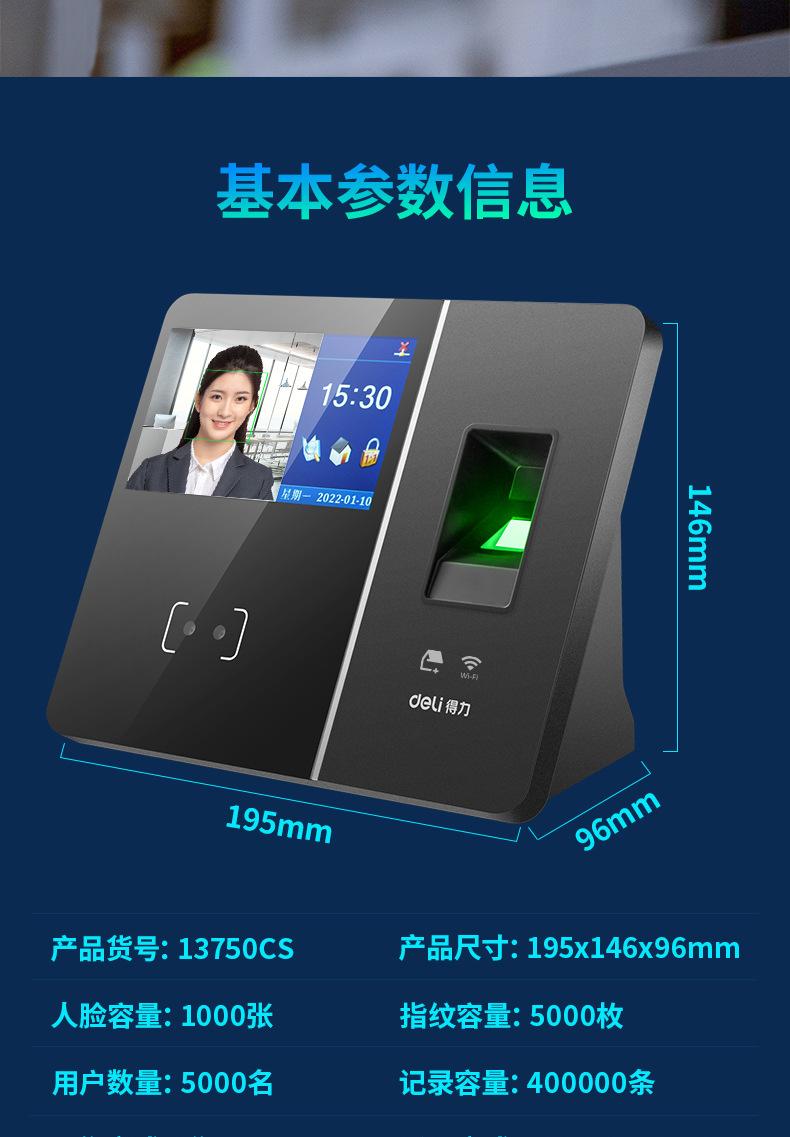 Máquina de asistencia en la nube Deli 13750CS, máquina de asistencia con reconocimiento facial, red remota inalámbrica WIFI, máquina de registro facial