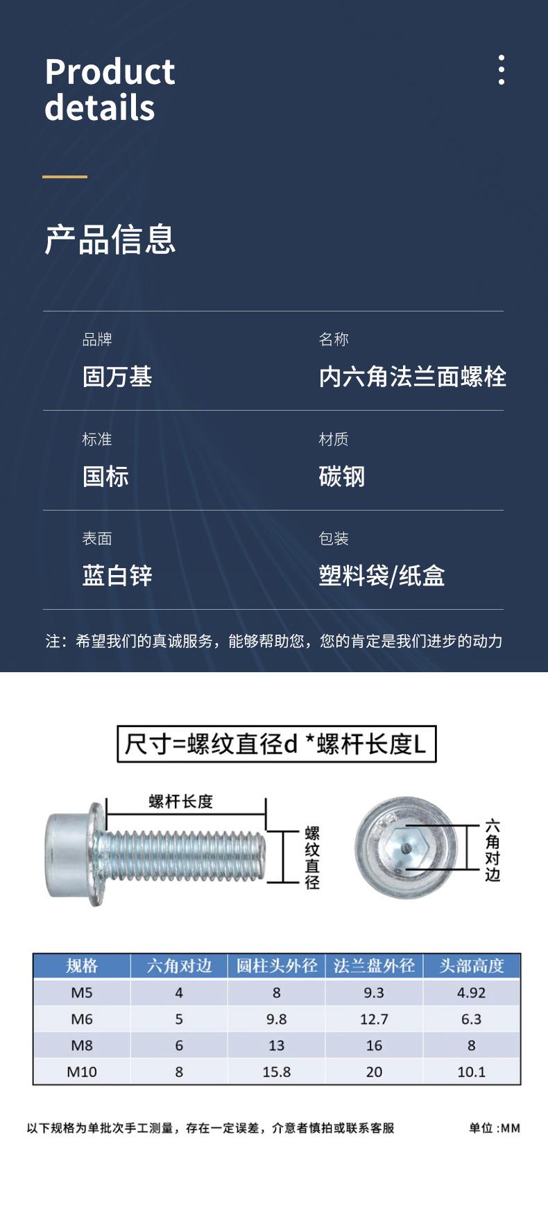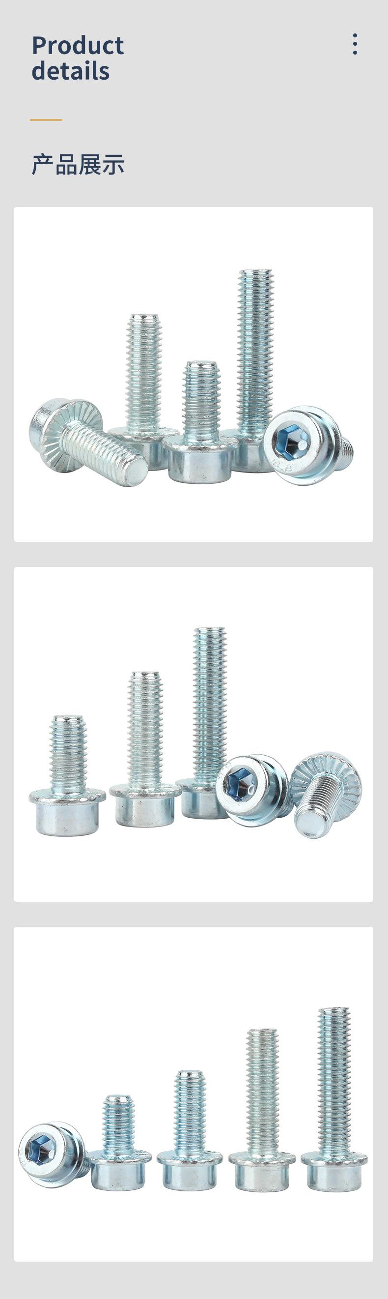 Tornillos hexagonales de brida galvanizados grado 8.8 con pernos espaciadores Acero inoxidable 304 Cabeza cilíndrica Cabeza de copa con arandela