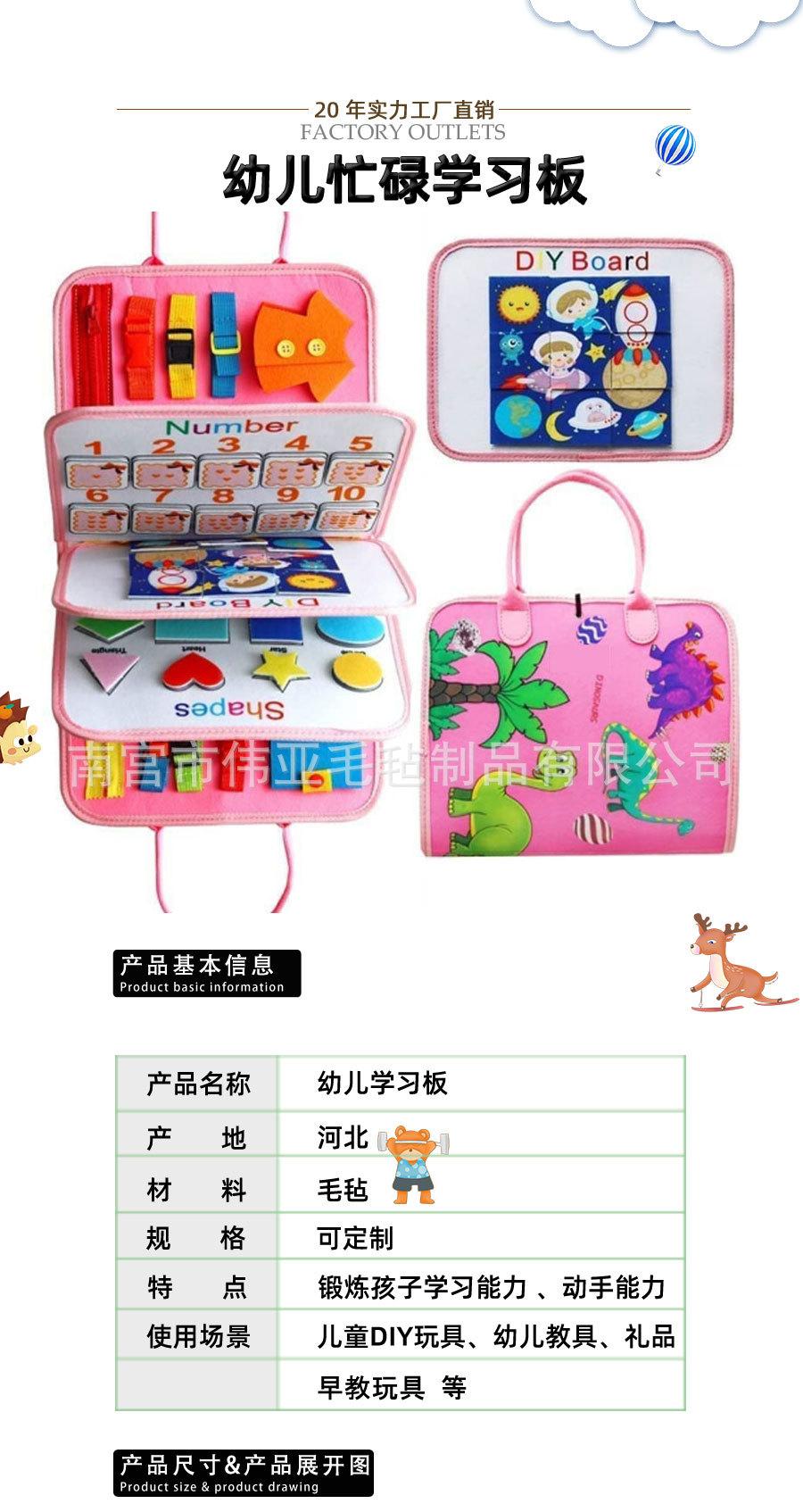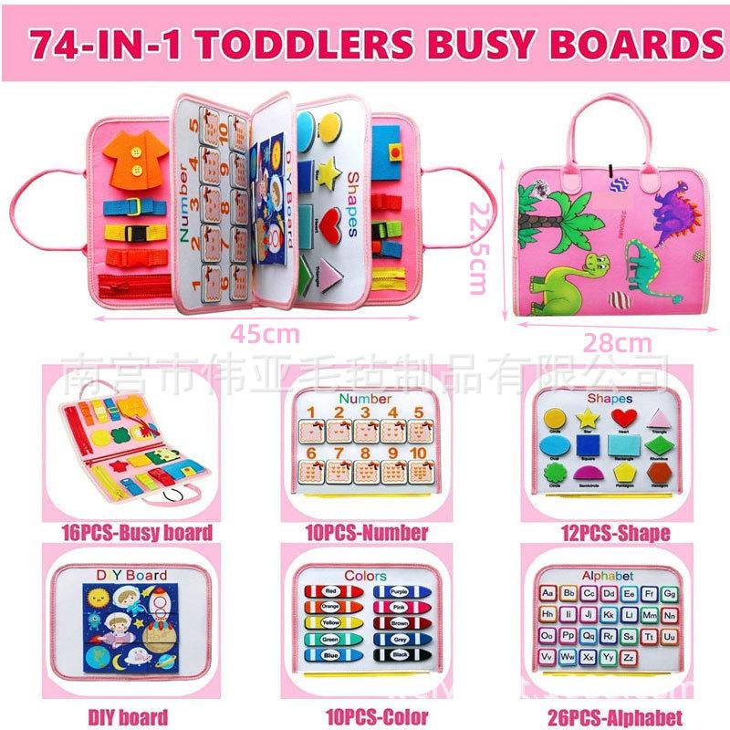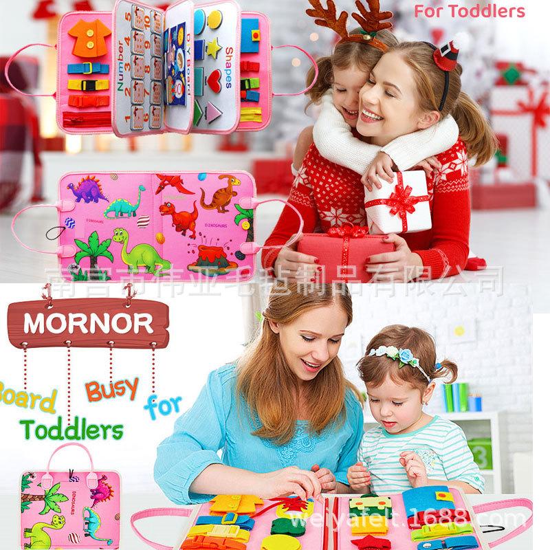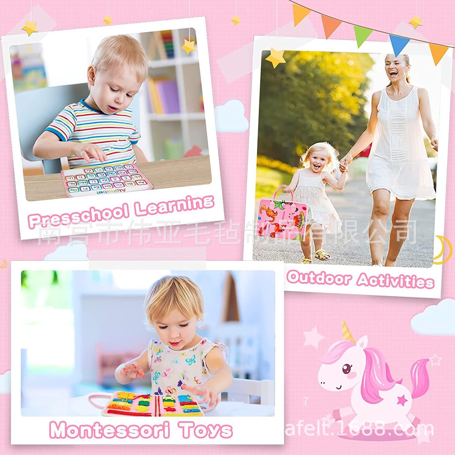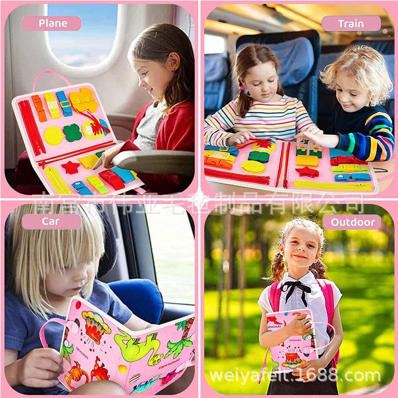 Tablero de actividades, material didáctico temprano, tablero de vestir para la iluminación, aritmética de diez dedos, Montessori, tablero de aprendizaje de fieltro para niños, rompecabezas de dinosaurio rosa