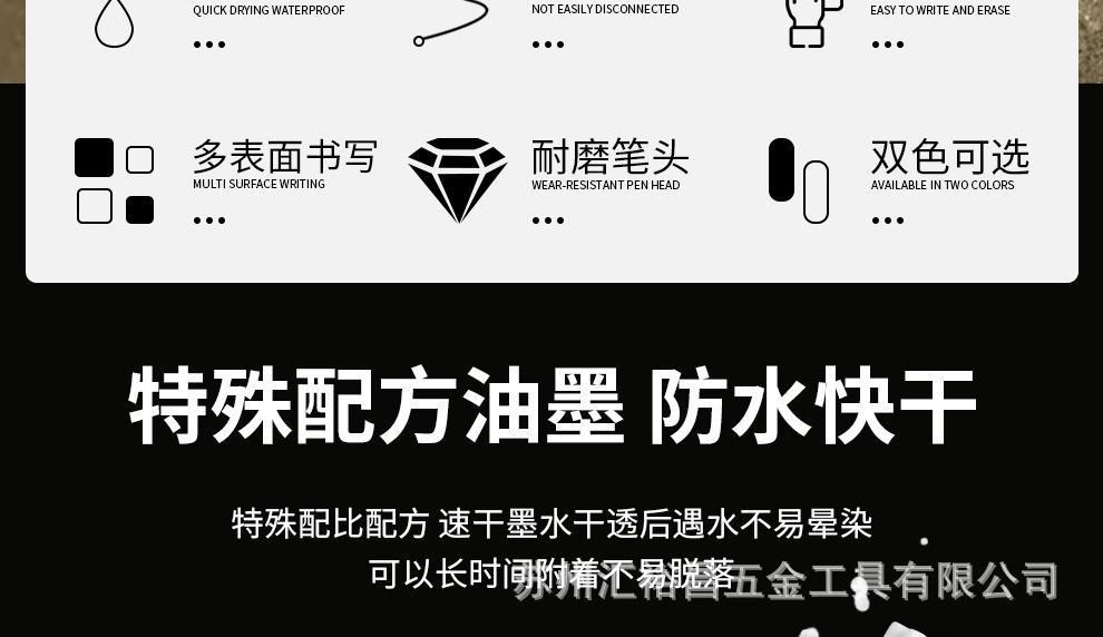 Salón Xiangshuo Pizarra/Pizarra Blanca Impermeable con Marcador de Núcleo Duro Marcador Impermeable Pluma de Secado Rápido Madera Metal