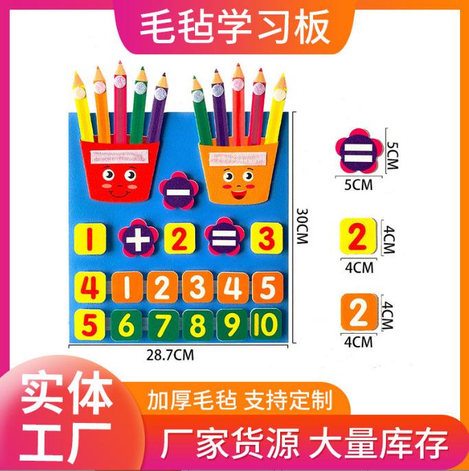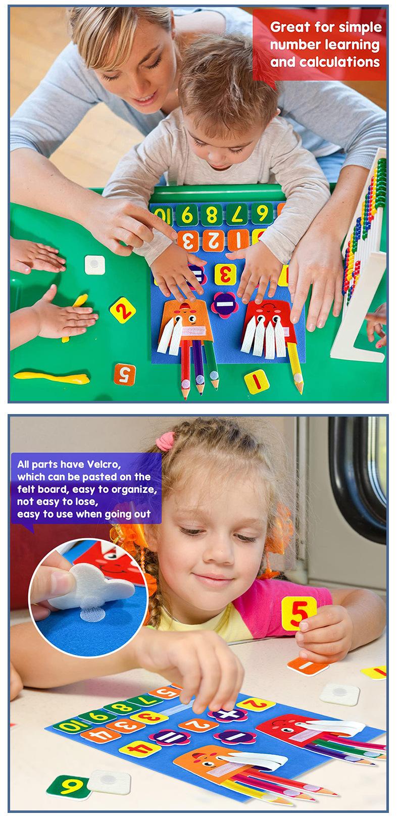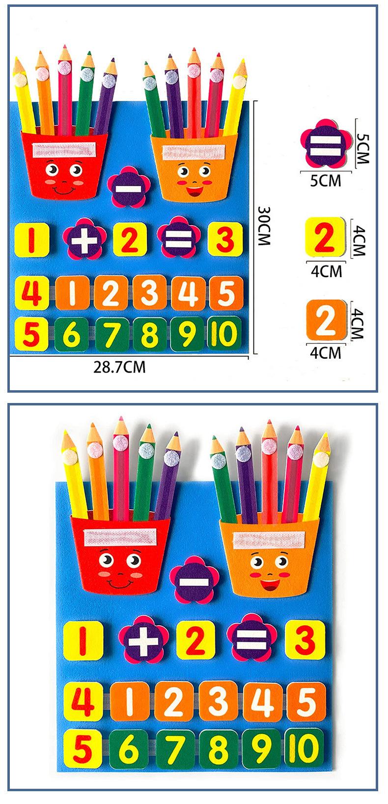 Tablero de Fieltro para Aprendizaje Tablero de Exhibición Set de Pinceles Ayudas para el Entrenamiento de la Educación Temprana del Bebé Juego de Rompecabezas de Dedos Números Tablero Ocupado
