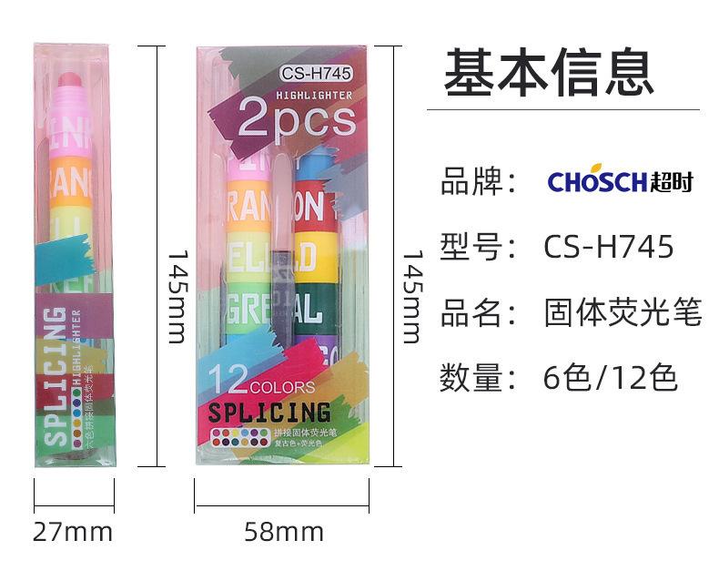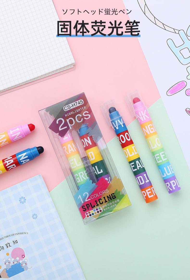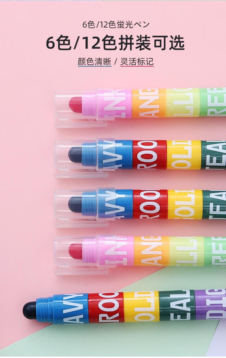 Rotulador fluorescente sólido de empalme con tiempo de espera 6 colores 12 colores rotulador de color uso para estudiantes conjunto de puntos clave se puede marcar