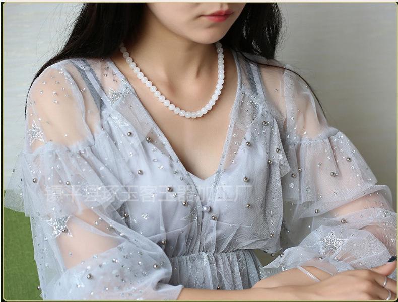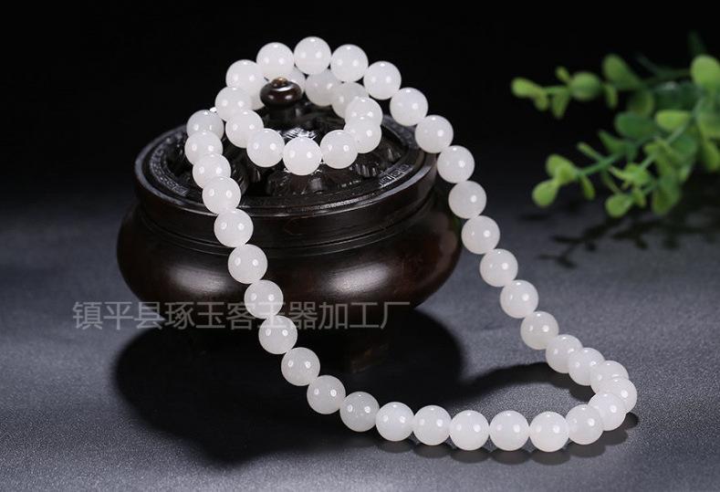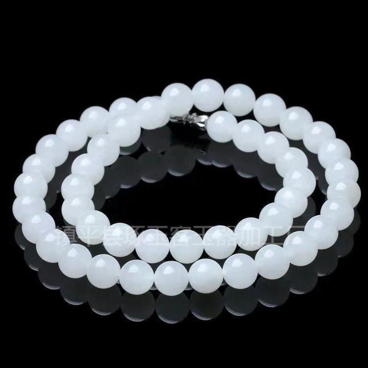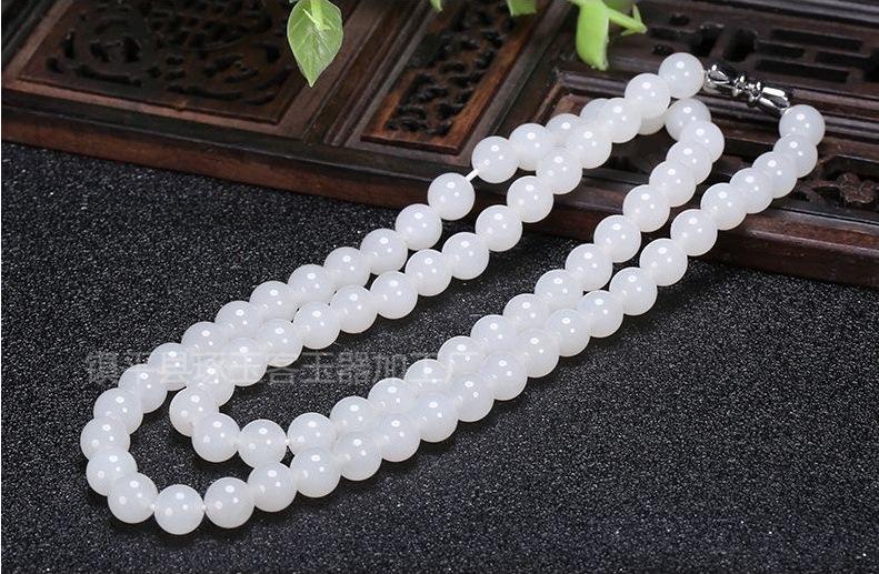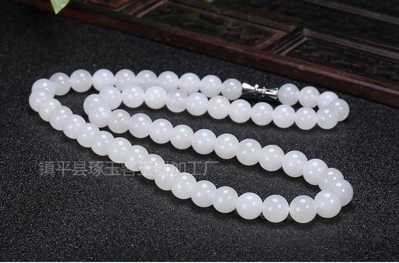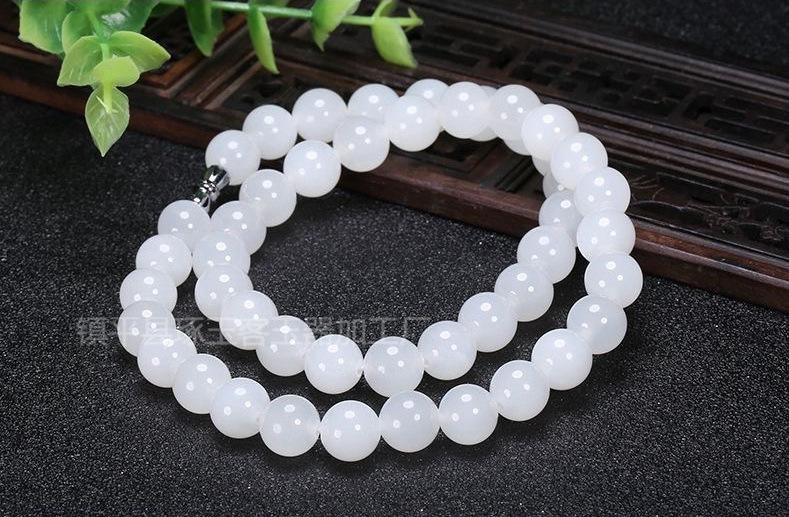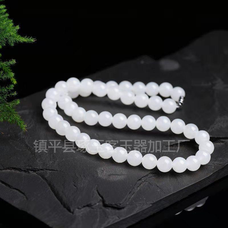 【Nombre del producto】Collar de cuentas redondas de jade blanco de Xinjiang