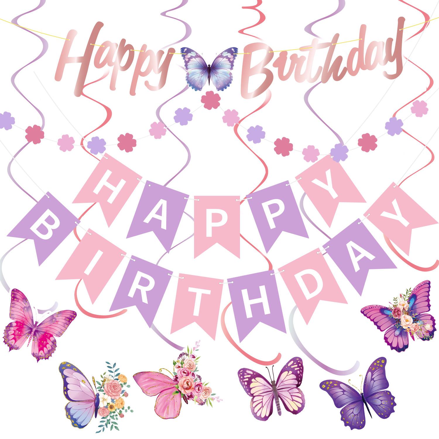 Nombre del producto: Paquete de Bandera de Cumpleaños de Mariposa