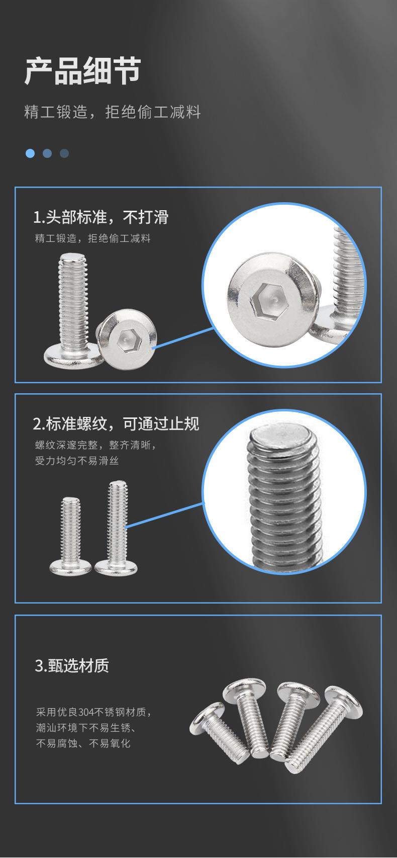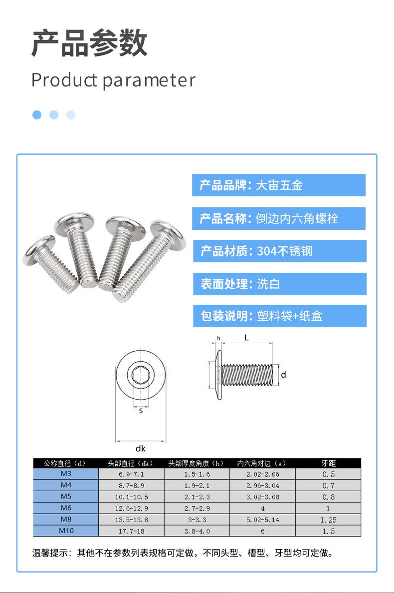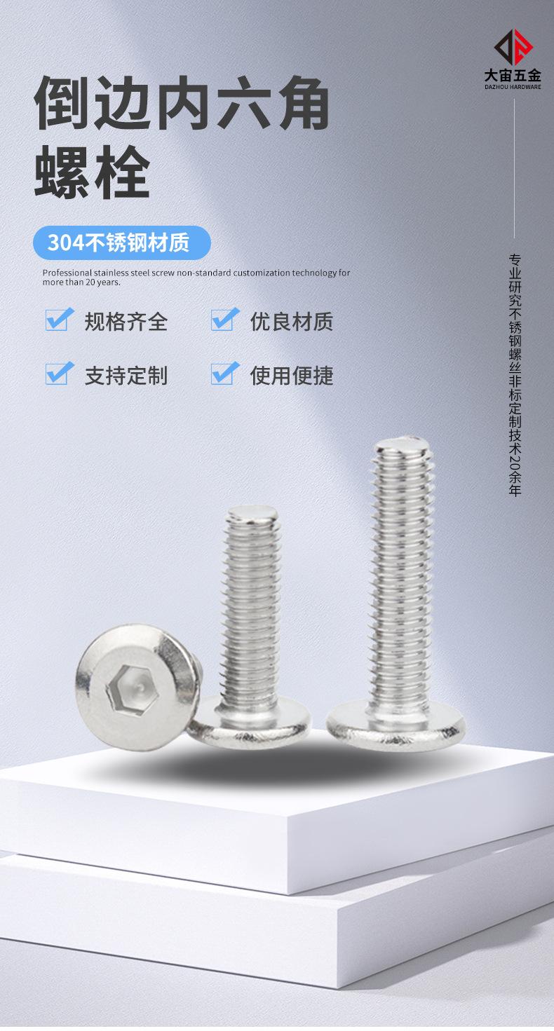 Tornillo de cabeza hexagonal de acero inoxidable 304, no estándar, M6, atornillado a mano, con hexágono interior de resistencia A2-70, M5