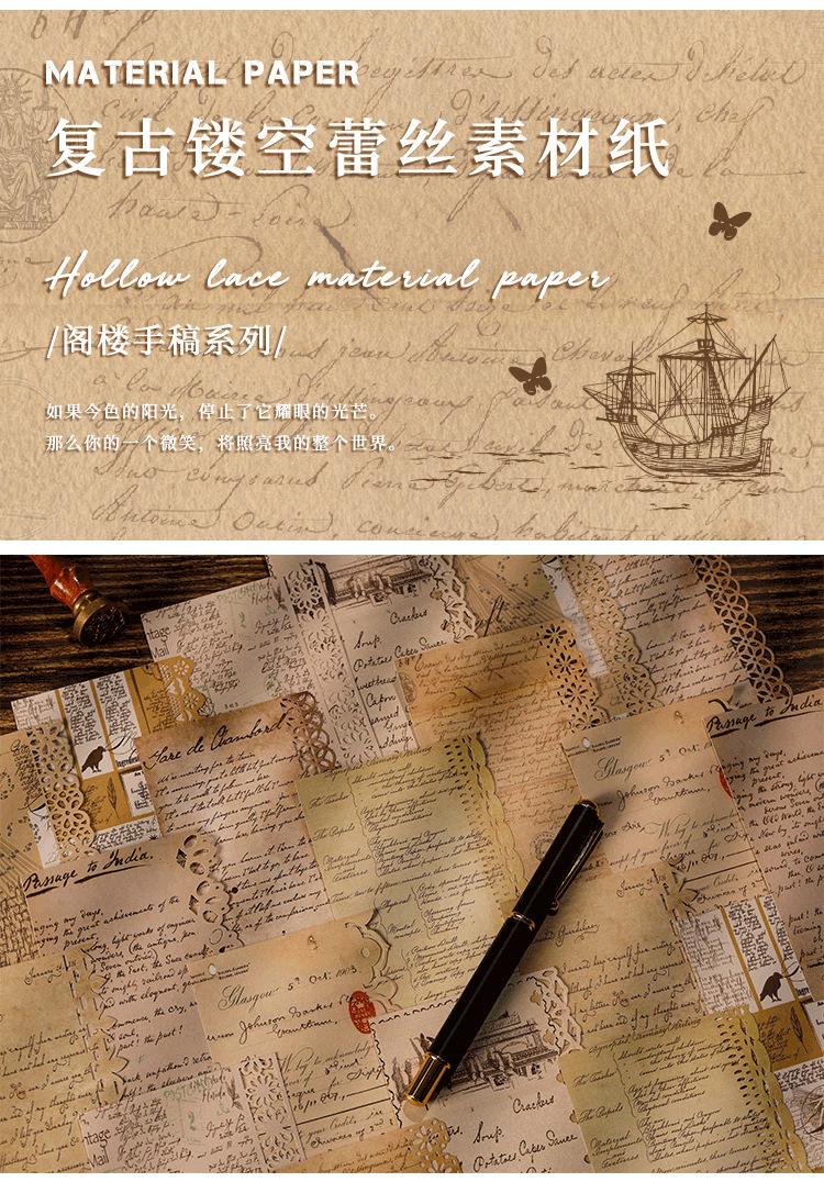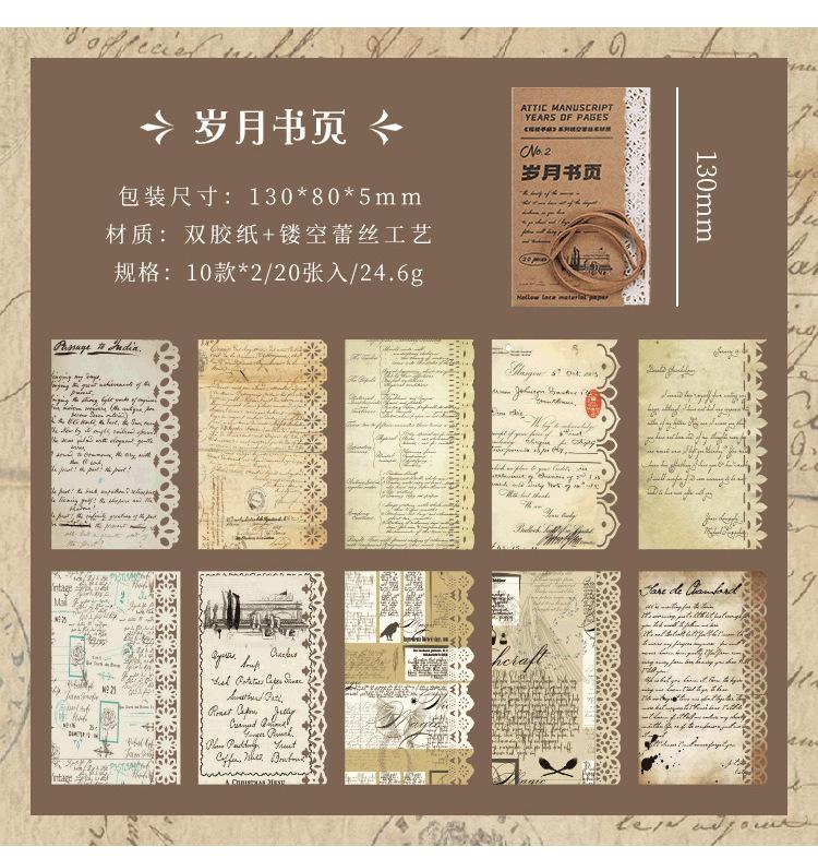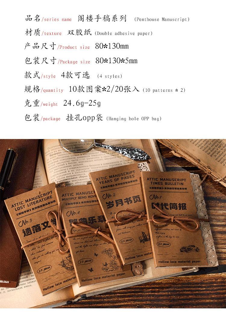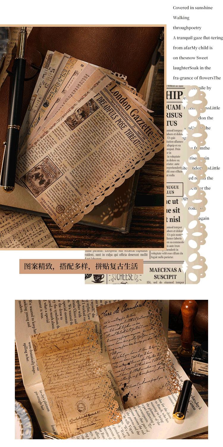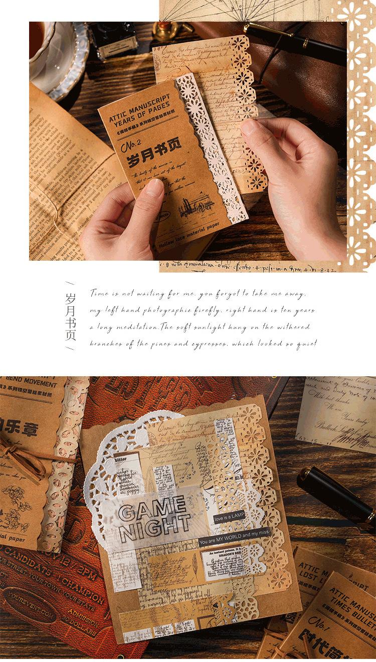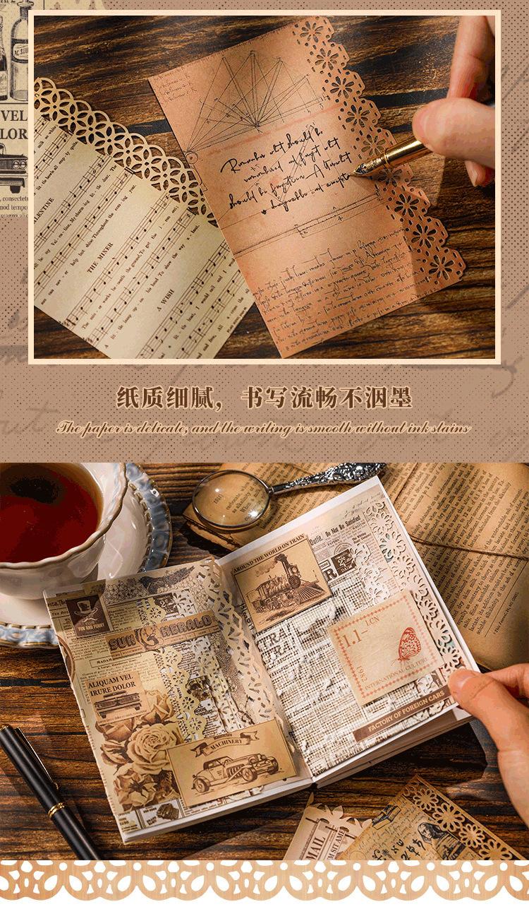 Manuscrito de Ático Retro Libro de Mano Material Papel Desgarrable DIY Paquete de Stickers para Libro de Mano Creativo Inglés Material de Stickers Nostálgicos