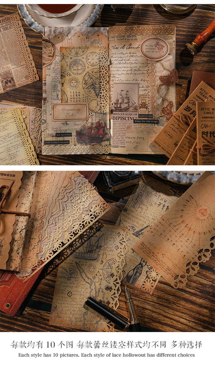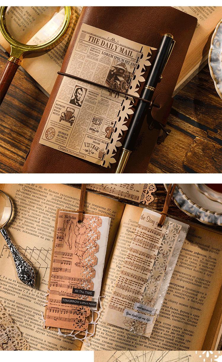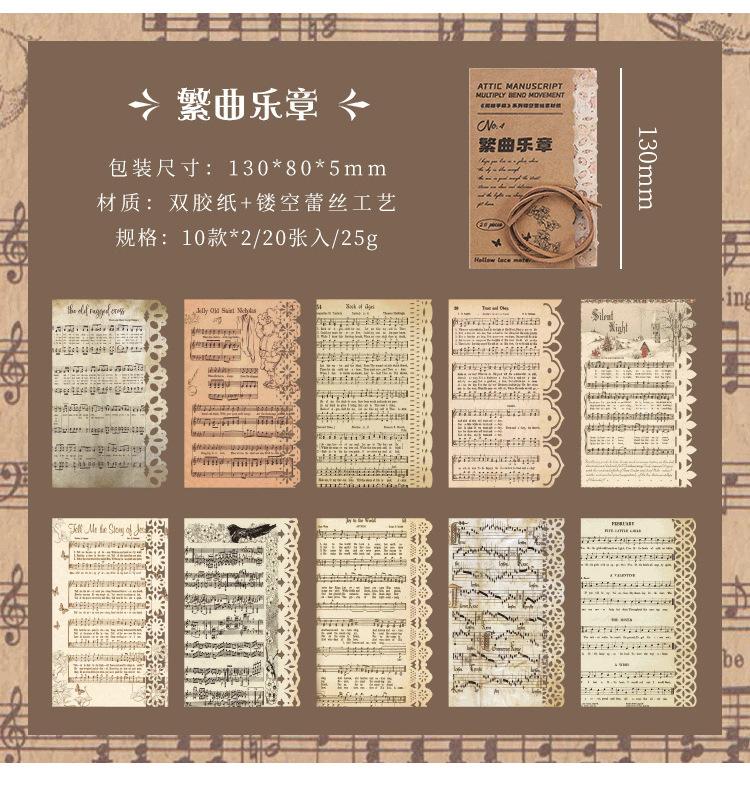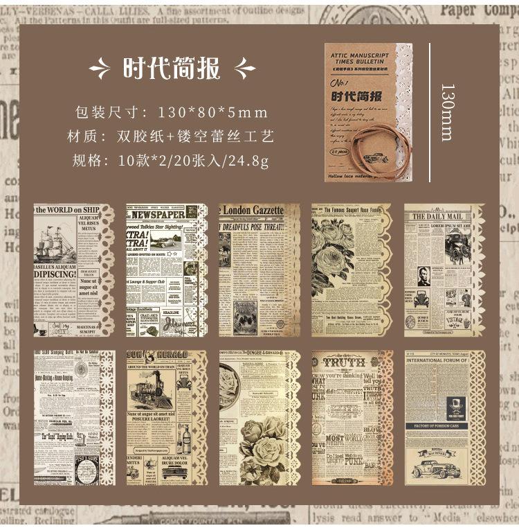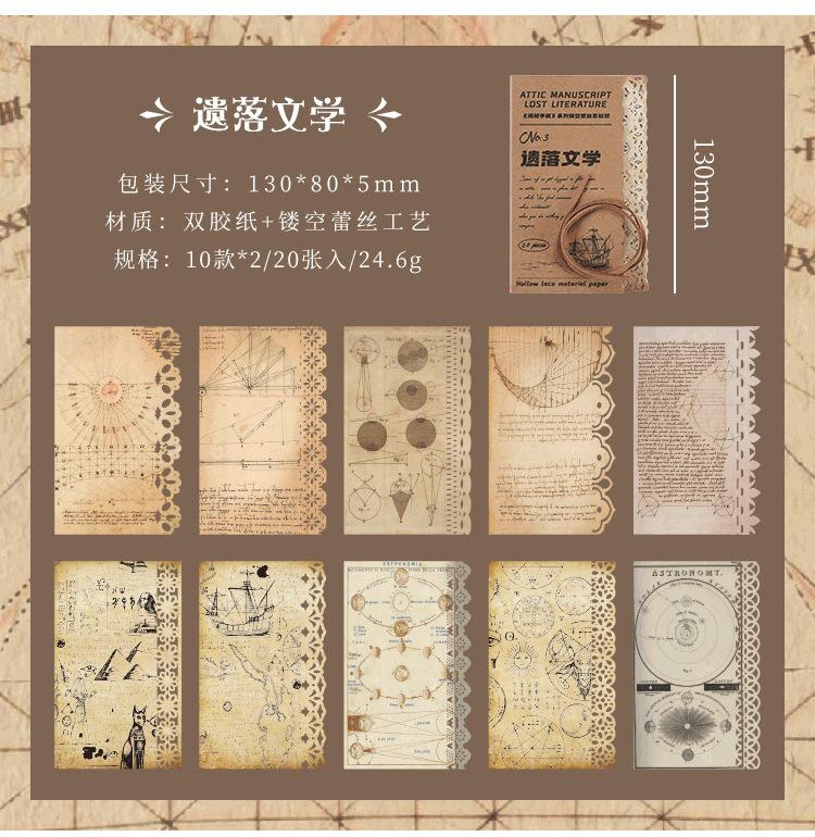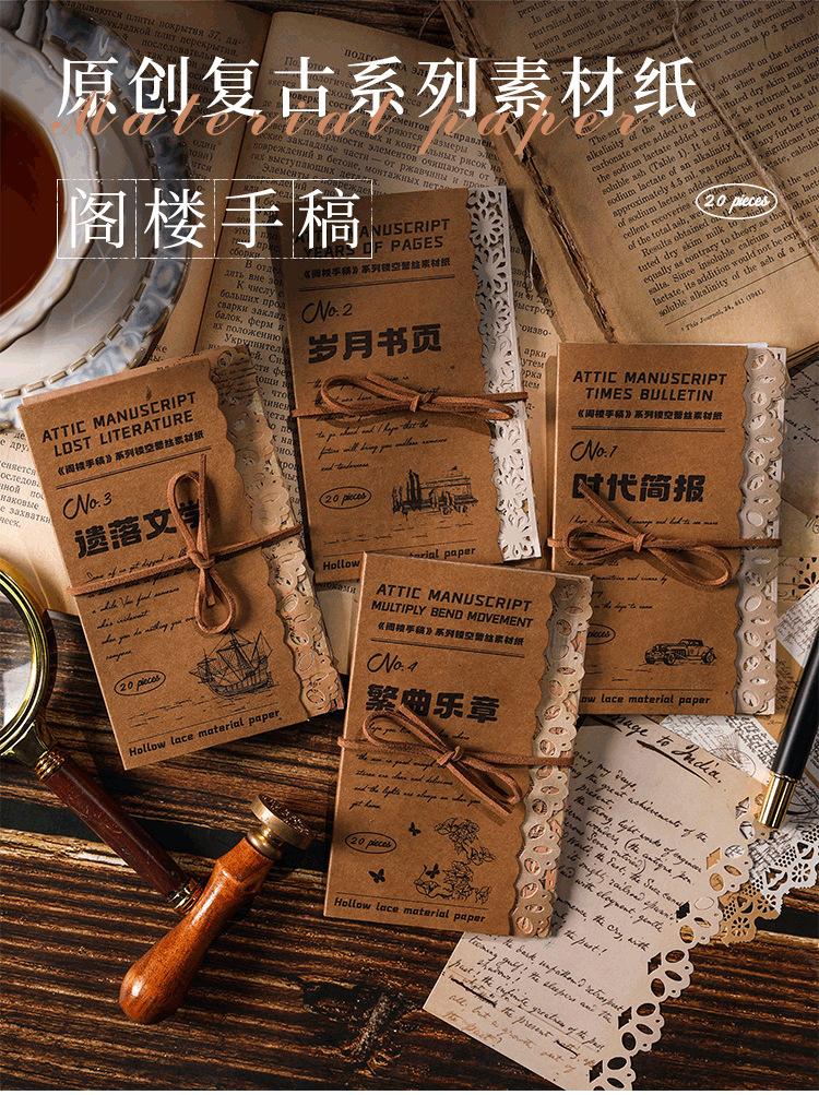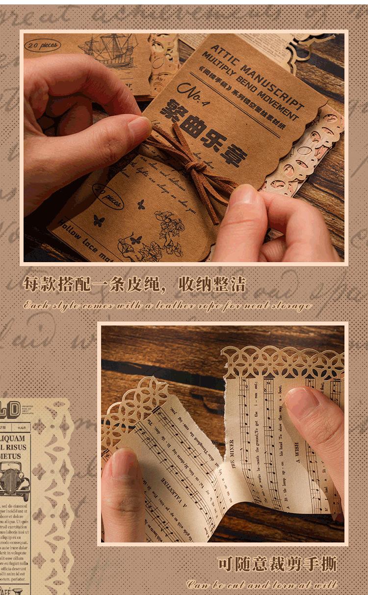 Manuscrito de Ático Retro Libro de Mano Material Papel Desgarrable DIY Paquete de Stickers para Libro de Mano Creativo Inglés Material de Stickers Nostálgicos