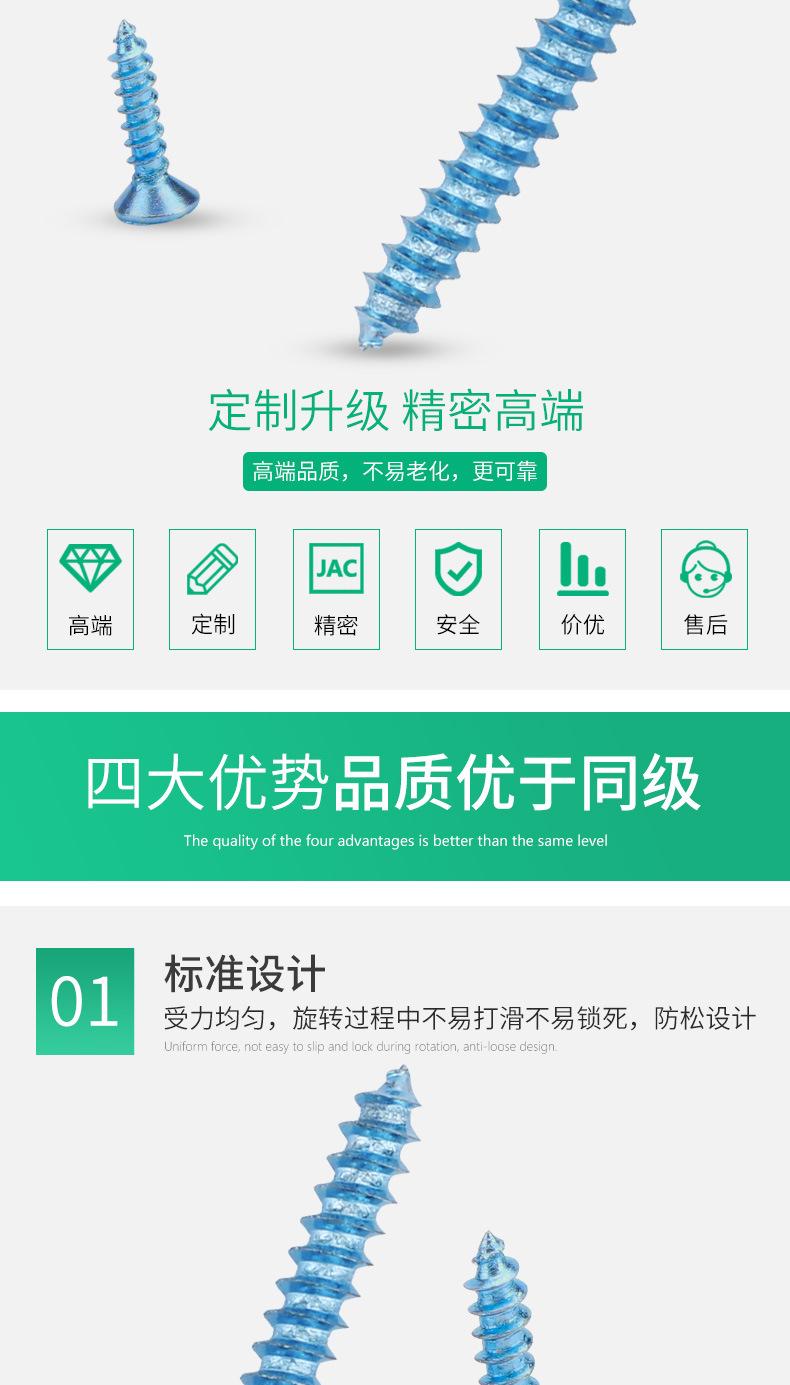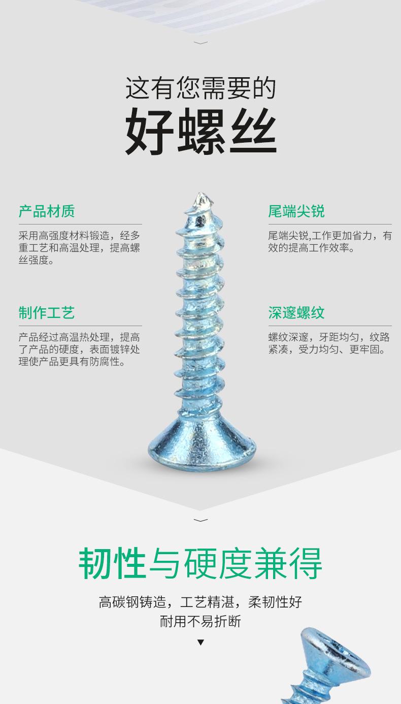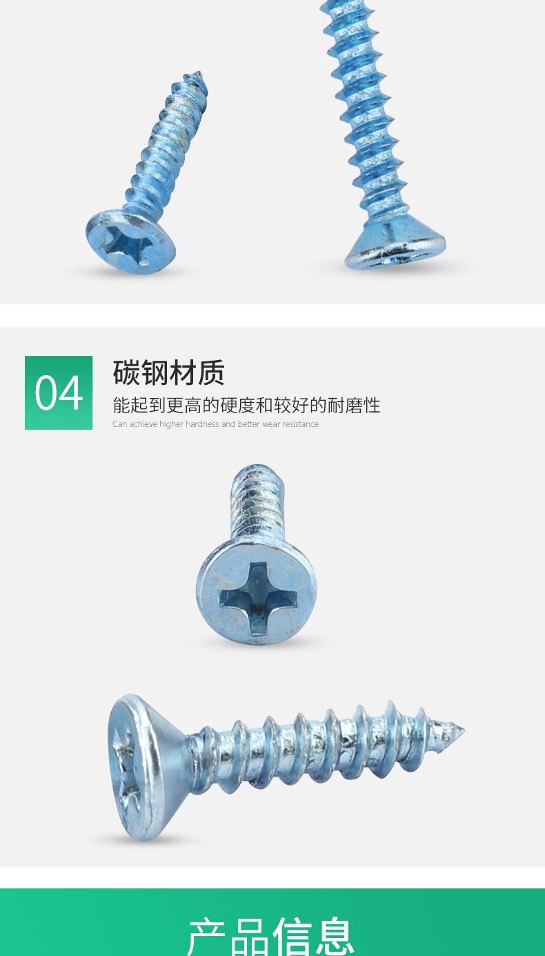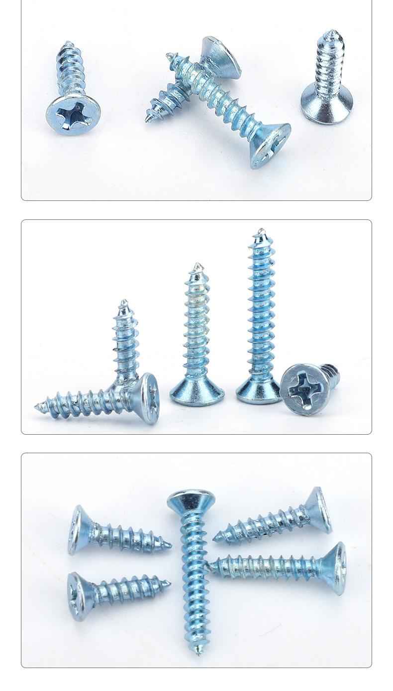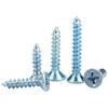 Tornillo autorroscante de cabeza plana de Shanghai, endurecido en zinc azul y blanco, M3/M4/M5/M6, tornillo de cabeza avellanada cruzada, tornillo con dientes de madera