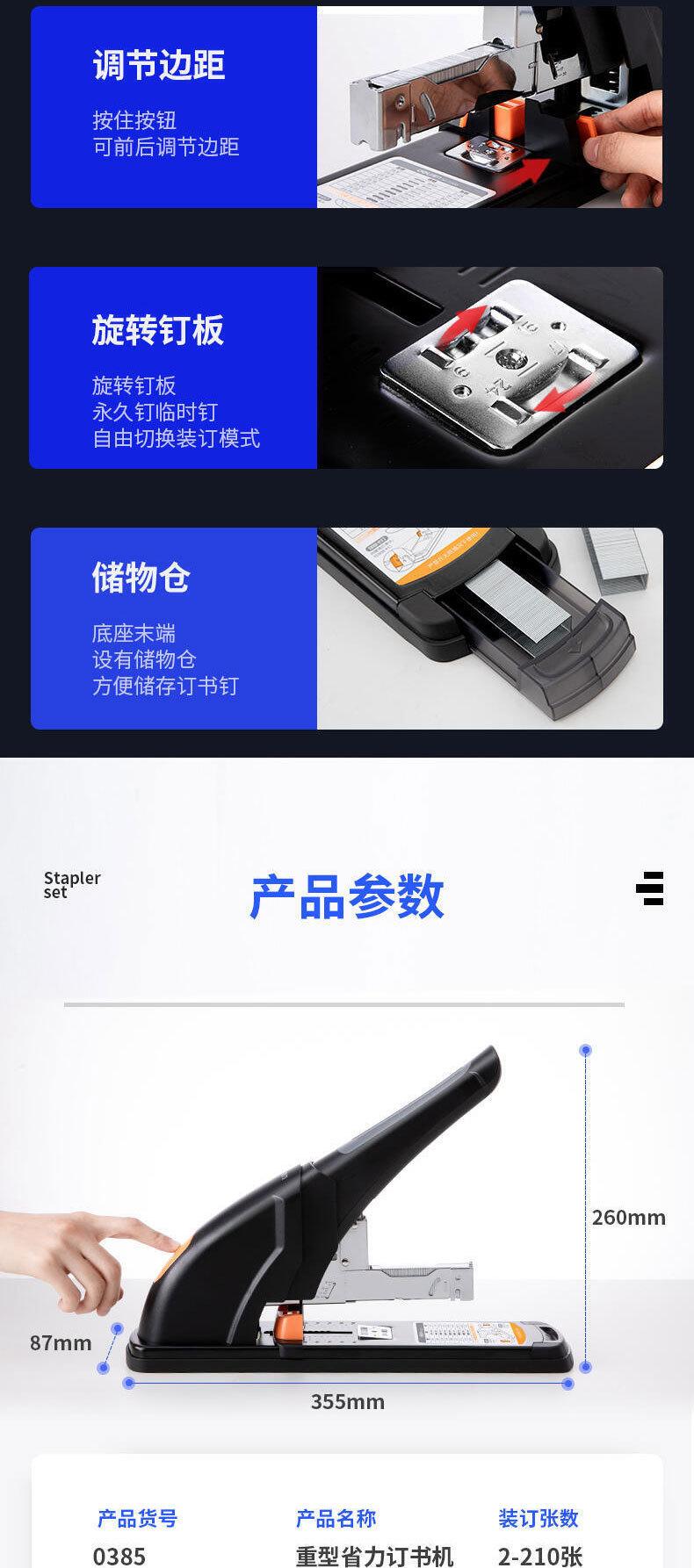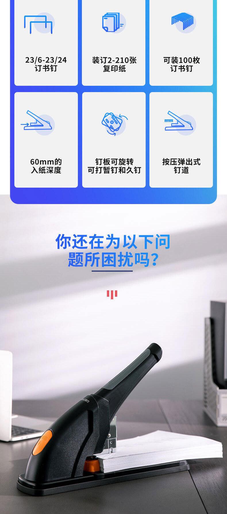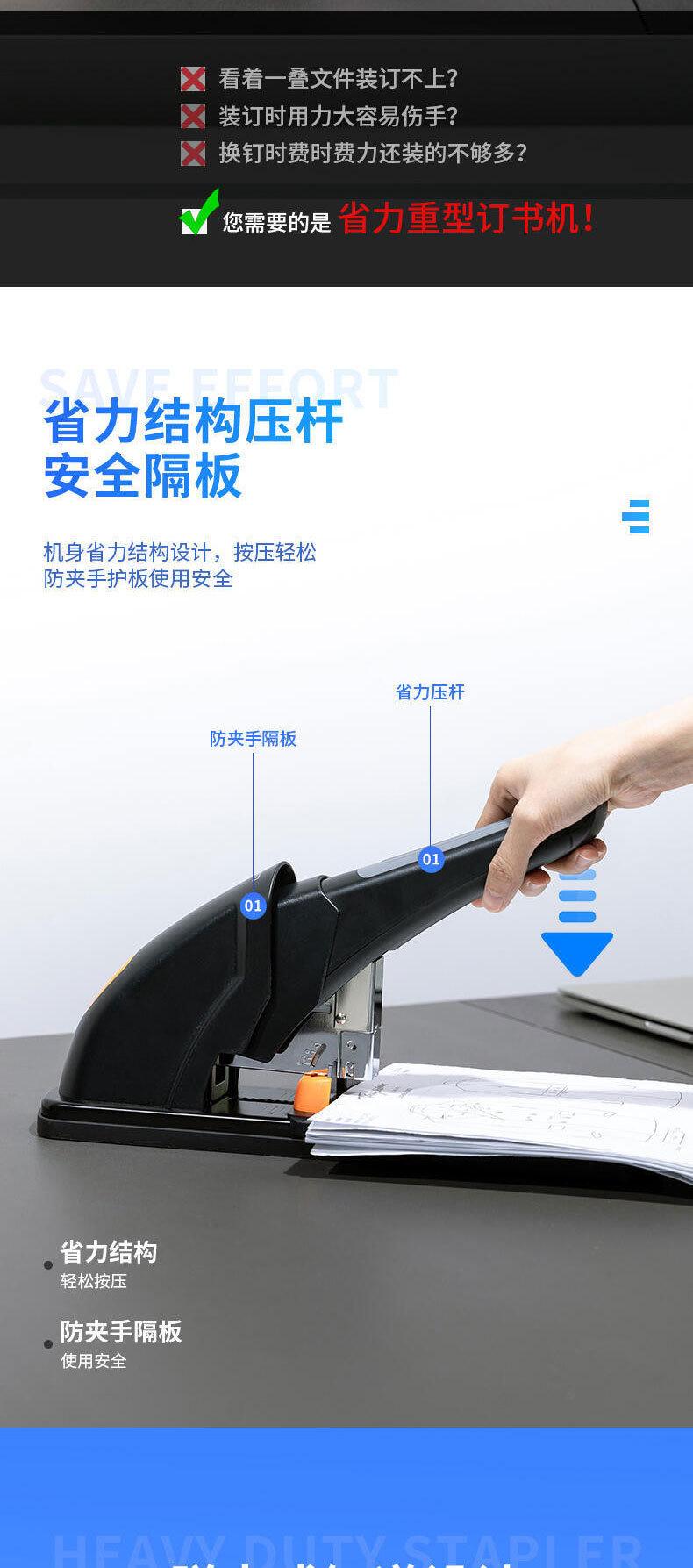 Grapadora Deli de gran tamaño para oficina, máquina de encuadernación financiera, engrosada, ahorradora de mano de obra, 210 páginas, grapadora pesada 0385