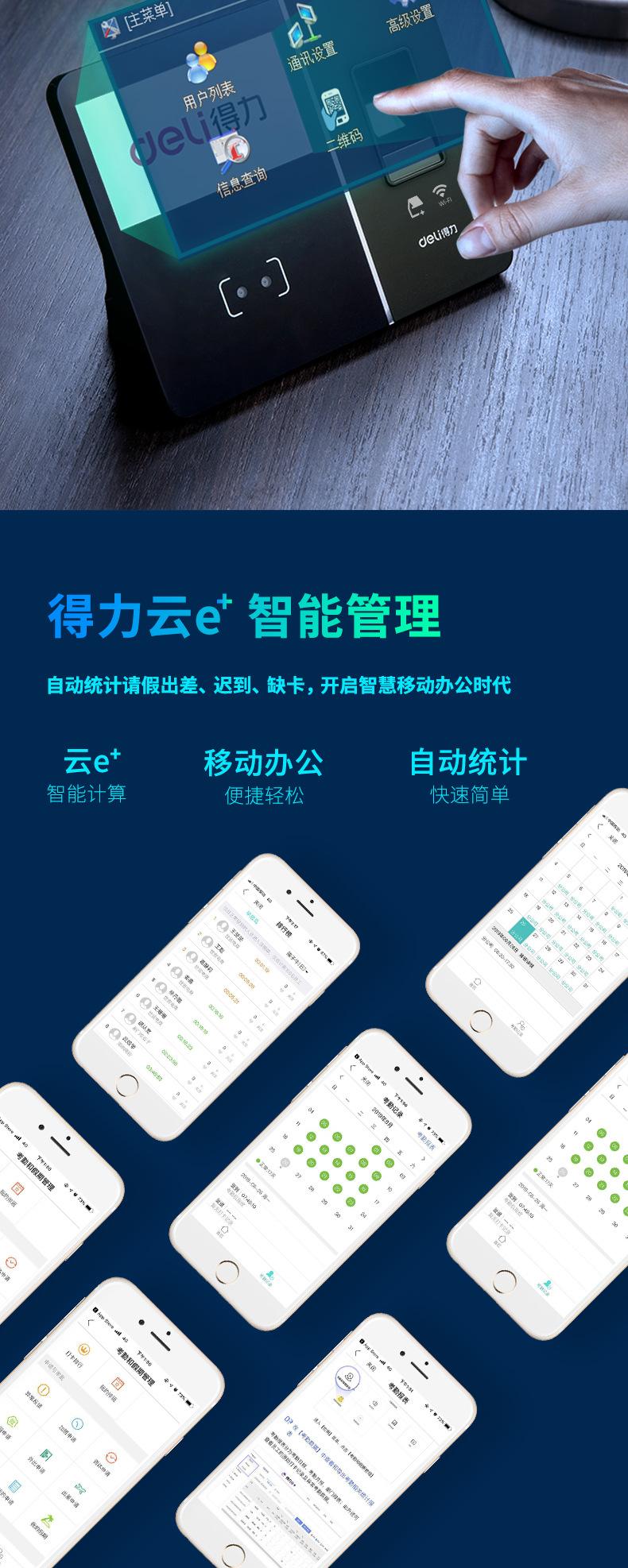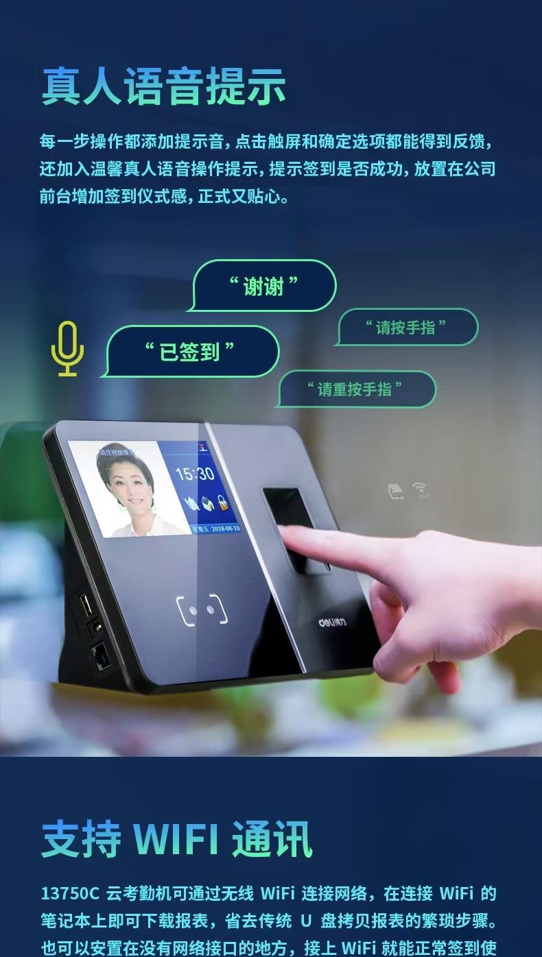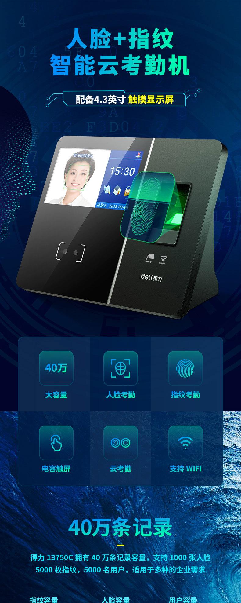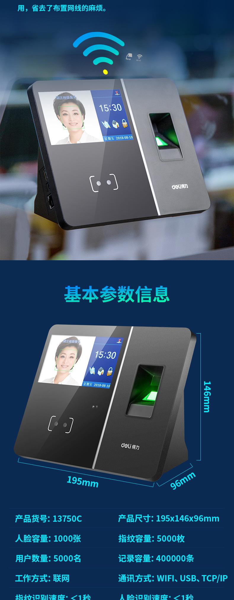Deli 13750C Máquina Inteligente Todo en Uno de Huella Digital Nube Reconocimiento Facial Máquina de Tarjetas Máquina de Asistencia Personal Inalámbrica