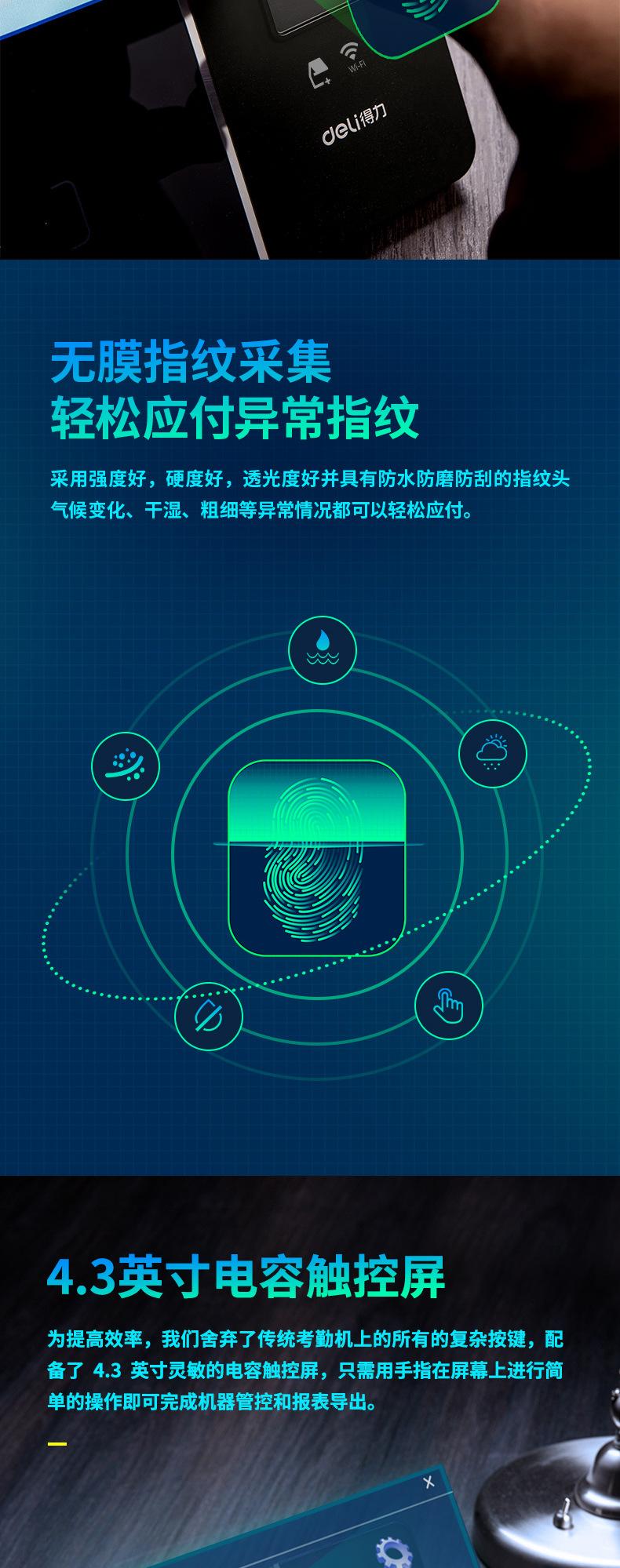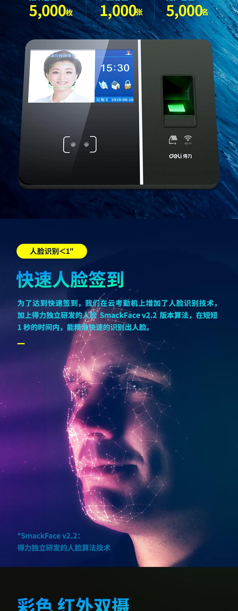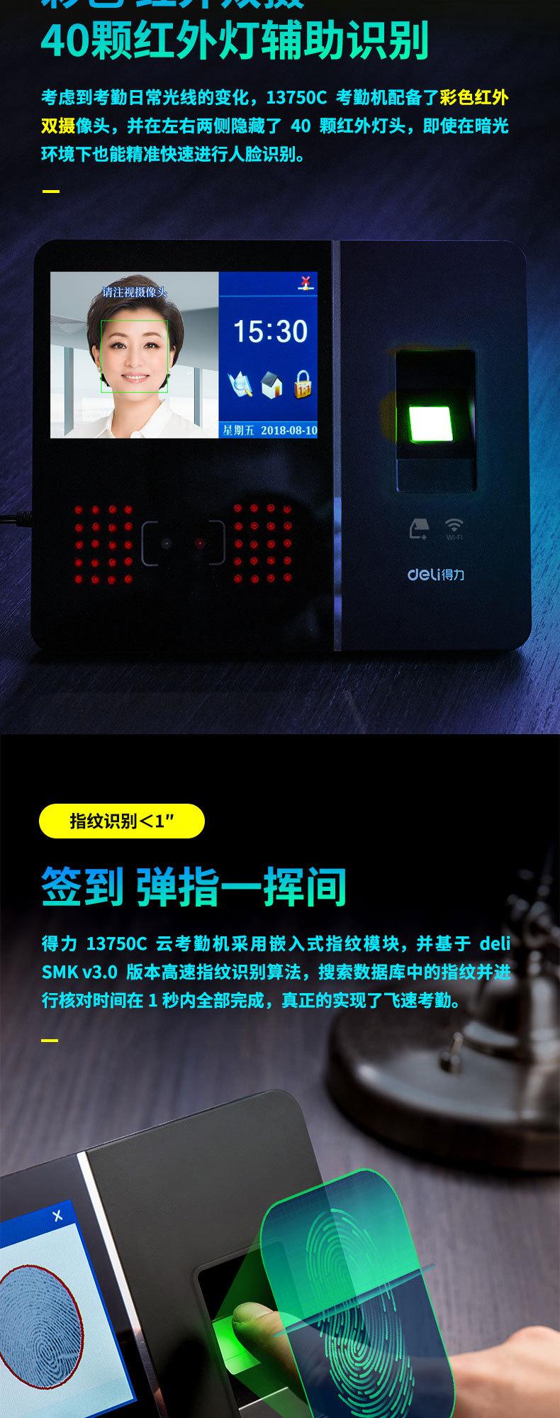 Deli 13750C Máquina Inteligente Todo en Uno de Huella Digital Nube Reconocimiento Facial Máquina de Tarjetas Máquina de Asistencia Personal Inalámbrica