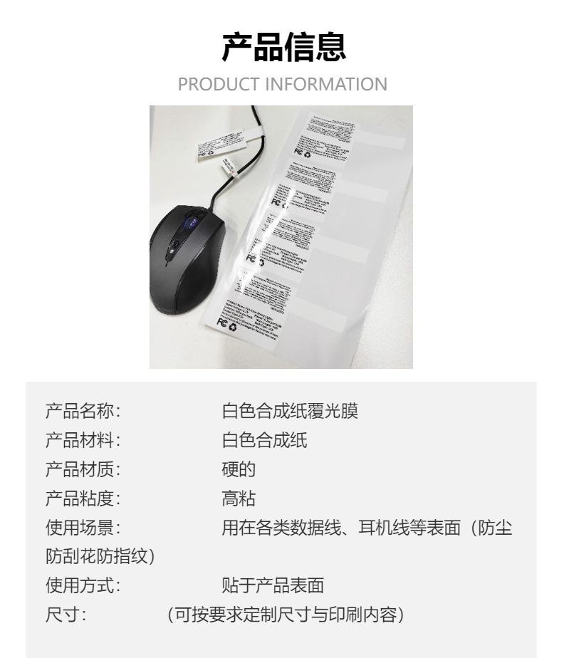 Material de Etiqueta de Línea, Papel Sintético Blanco con Recubrimiento de Película, Película Protectora Recordatorio de Impresión con Clase, Película Recién Hecha y al Por Mayor