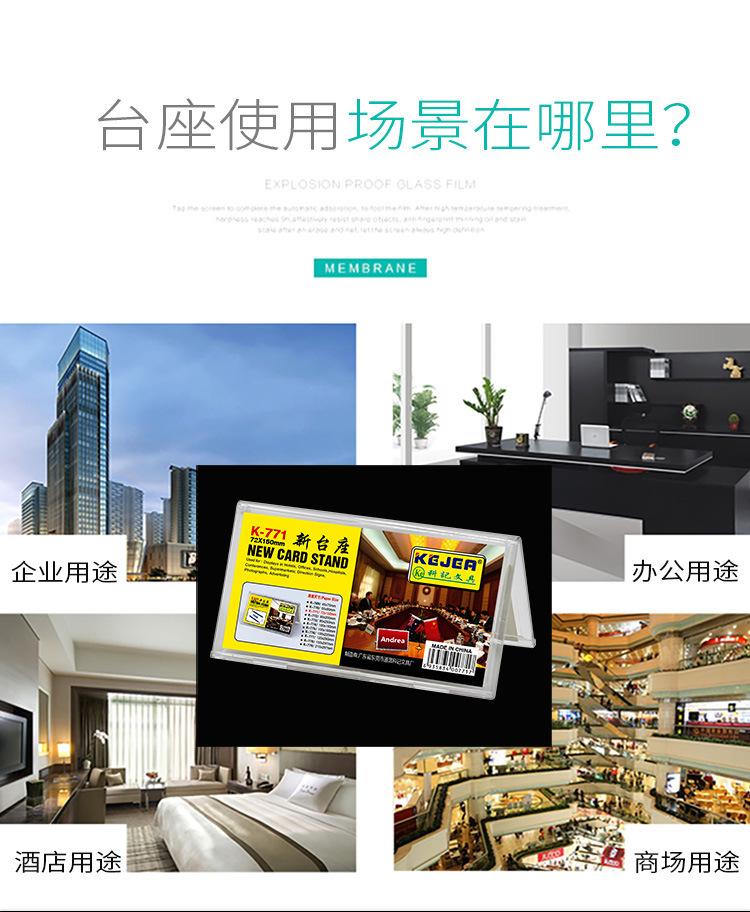 FUENTE fabricante Keji triángulo nuevo soporte al por mayor tarjeta de visualización transparente de doble cara múltiples especificaciones tarjeta de mesa de escritorio letrero de mesa