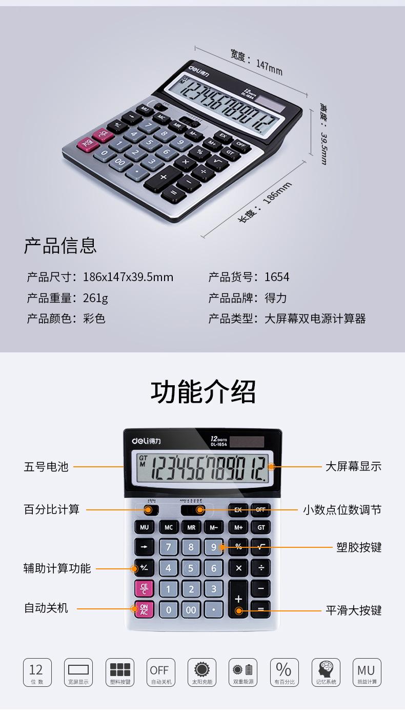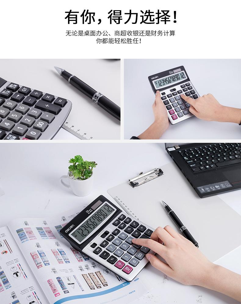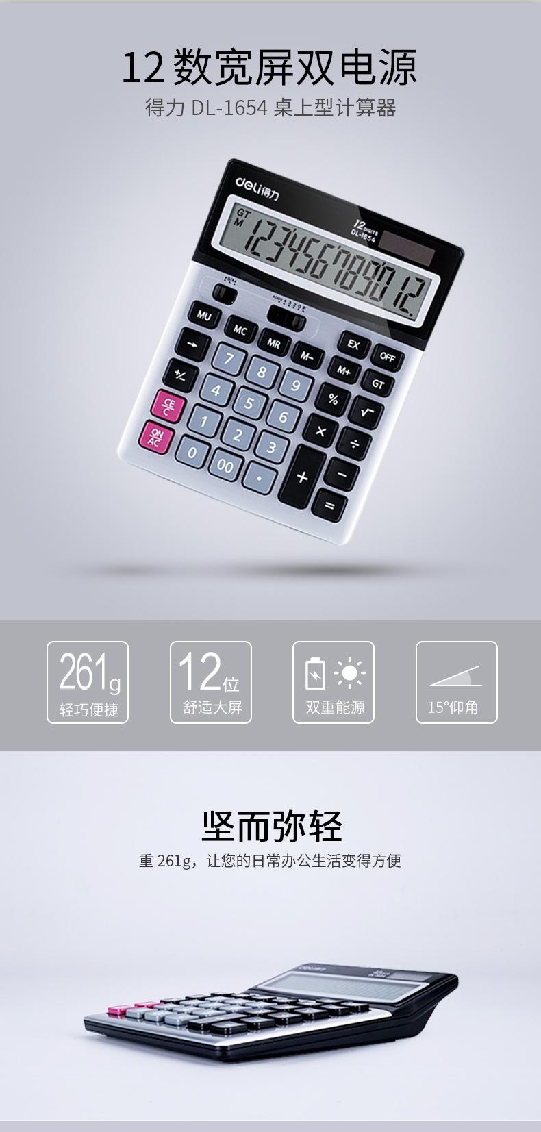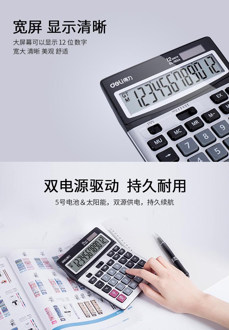 Calculadora solar de doble potencia Deli 1654, con pantalla grande de 12 teclas y contabilidad financiera.